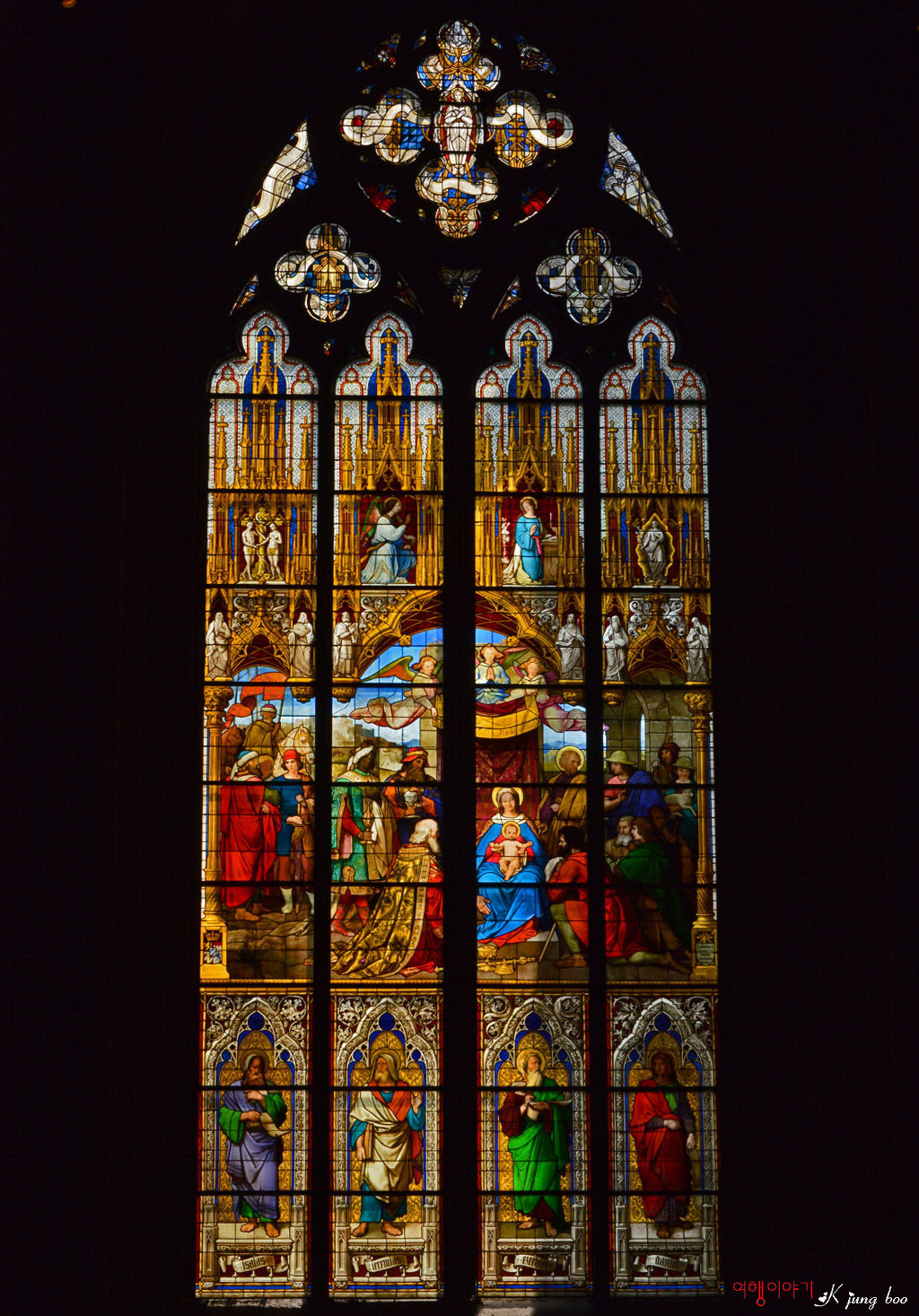 유럽에서 가장 오래 보존된 14세기의 스테인드글라스 창문이라고 합니다. 성당 안에 들어섰을 때 가장 눈에 들어오는 것은 단연 스테인드글라스다.