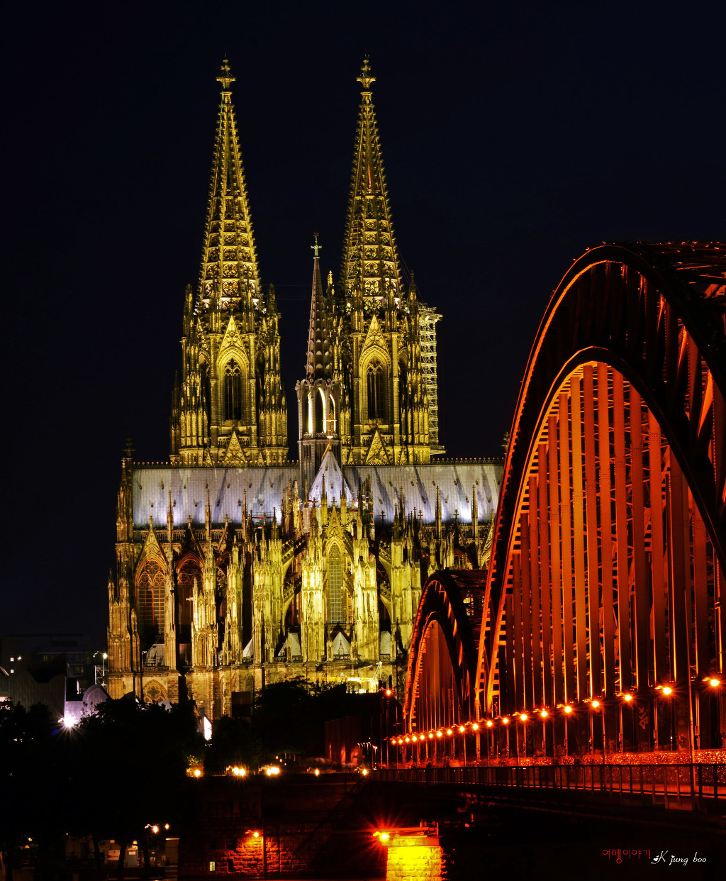 쾰른의 상징적인 건축물인 쾰른대성당은 독일 최대의 고딕양식 건축물로 높이 157m, 건물의 안 길이만도 144m에 달하는 대성당이다. 보는순간 그 웅장함에 압도당하며 밤에 보는 대성당은 낮과는 또다른 느낌으로 다가온다. 외관뿐만 아니라 내부의 스테인레스 글라스와 유서 깊은 제단화, 조각물, 그중에서도 황금위 '세왕의 성관'은 중세 황금 세공의 최고 걸작으로 여겨지고 있다. 의례용품 등을 전시한 보물전시관도 개방되고 있다.