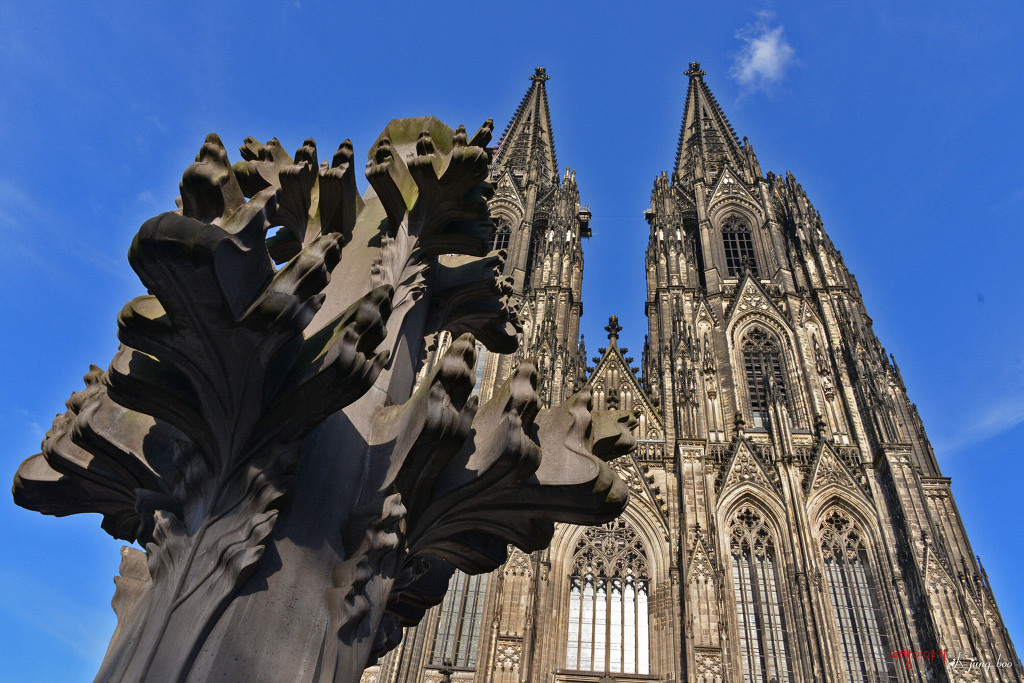 쾰른 대성당 앞에 독특한 모양의 탑? Kreuzblume.크로이츠블루메. 한글로 옮기자면 '애기풀' 이다. 저 뒤의 쾰른 대성당의 두개의 탑 꼭대기에 있는 것과 같은 모양이다. 9.5m 높이에 4.6m 의 폭. 실제 크기를 옮겨 놓은 듯 큰 몸집을 자랑하고 있다.