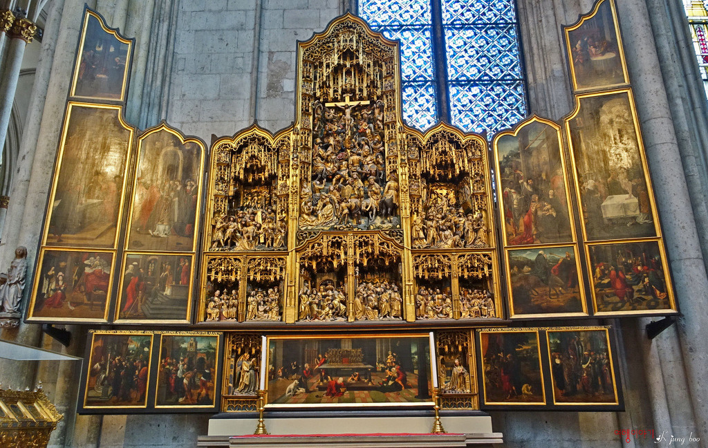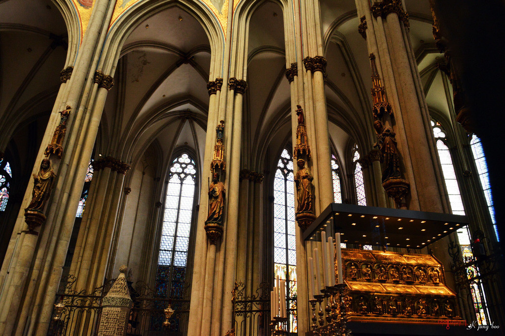 세동방박사유골함(Drei Konigenschrein) 1164년 과거 이탈리아로 원정을 나갔던 대주교 라인란트 폰 다셍(Reinland von Dassel)이 밀라노에서 가지고 온 세 동방박사의 유골함. 이것을 보관하기 위해 퀠른 대성당의 건축이 시작되었다