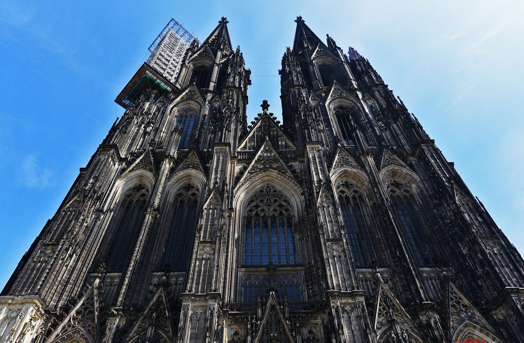 고딕양식의 절정을 볼 수 있는 쾰른대성당 중세의 대성당은 대개 몇 세기에 걸쳐 완성된 건축물이다. 그러나 쾰른 대성당의 건설 기간은 1248~1880년으로, 완성되기까지 걸린 무려 632년이라는 수치는 282년의 중단 기간이 있었다고는 해도 평범한 것은 아니다. 1842년의 제2기 공사가 시작되기까지, 내진, 남쪽 탑의 하부와 외진, 익랑의 일부만으로 구성된 거대한 미완성의 건물이 도시 경관을 지배했던 것이다. 드디어 1880년에 완성을 보게 되었다. 1996년에 세계문화유산으로 등록되었다.