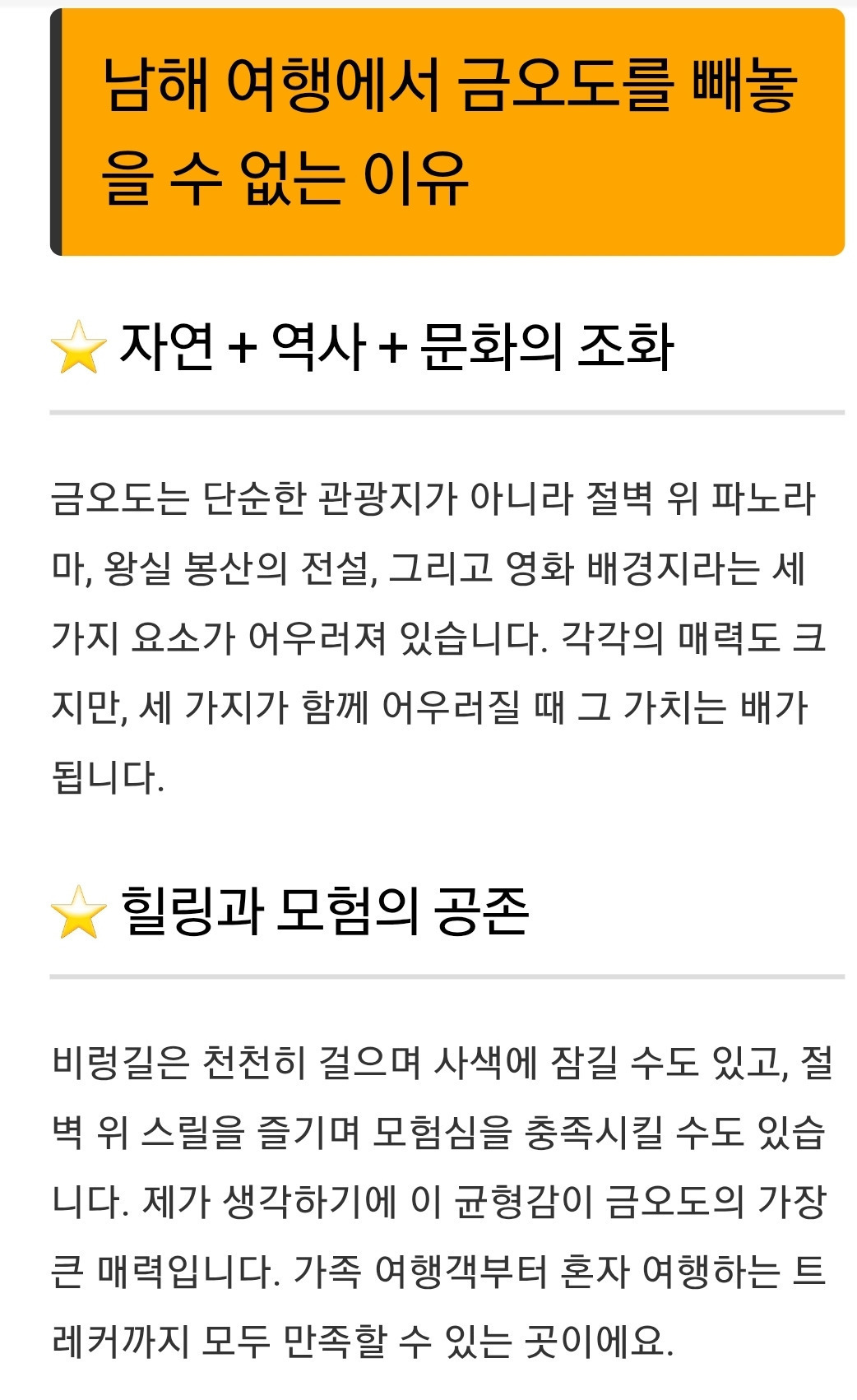 | ■구ㆍ시민뒤 미경유XXX■한밭대로이용 ■ ■출발06시■신분증지참■관광전용팀3코스■ 섬&산100선 금오도 대부산/비렁길 트레킹(여수) 일시;3/1(조:국밥 중:찰밥 반지참 회비4만) 출발:월드컵역2번06시-유성홈플5-월평역1번6-갈마1번7- 둔산경찰서건너10-가람A육교15-한국병원25-대전IC원두막06시30분 알림:신기항10시30>출항-금오도 16시30>출항 1코스:여천항 시내버스 승차 함구미 하차 등산 시작 대부산 여천항(6km/4시간)여유 있음 2코스:함구미 비렁길 직포(8km/3시간) 3코스:최고명코스>학동 비렁다리 직포(4km2시간30분)초보권장/4km힘드시면 ^^중간탈출있음) 알림:원두막>신기항 3시간30분 소요 ●승선료. 현지 시내버스비 별도/신분증지참● 스마트폰으로 신청시 통화 문자 우측 텃치 해주세요>> 예약문의010 8432 2816(문자주세요) ㅡㅡㅡㅡ ■금오도 비렁길 트레킹(여수)■ ■초보권장 힐링 4시간 동백꽃 ■ ㅡㅡㅡㅡㅡ ■아래;대부산■ ㅡㅡㅡㅡㅡ ㅡㅡㅡㅡㅡ |