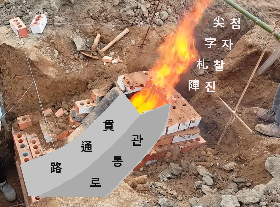 그러면 '첨자찰진(尖字札陣)'전법의 형식을 구들 놓기에 응용한 '관통로(貫通路)' 기법이란 무엇인가?