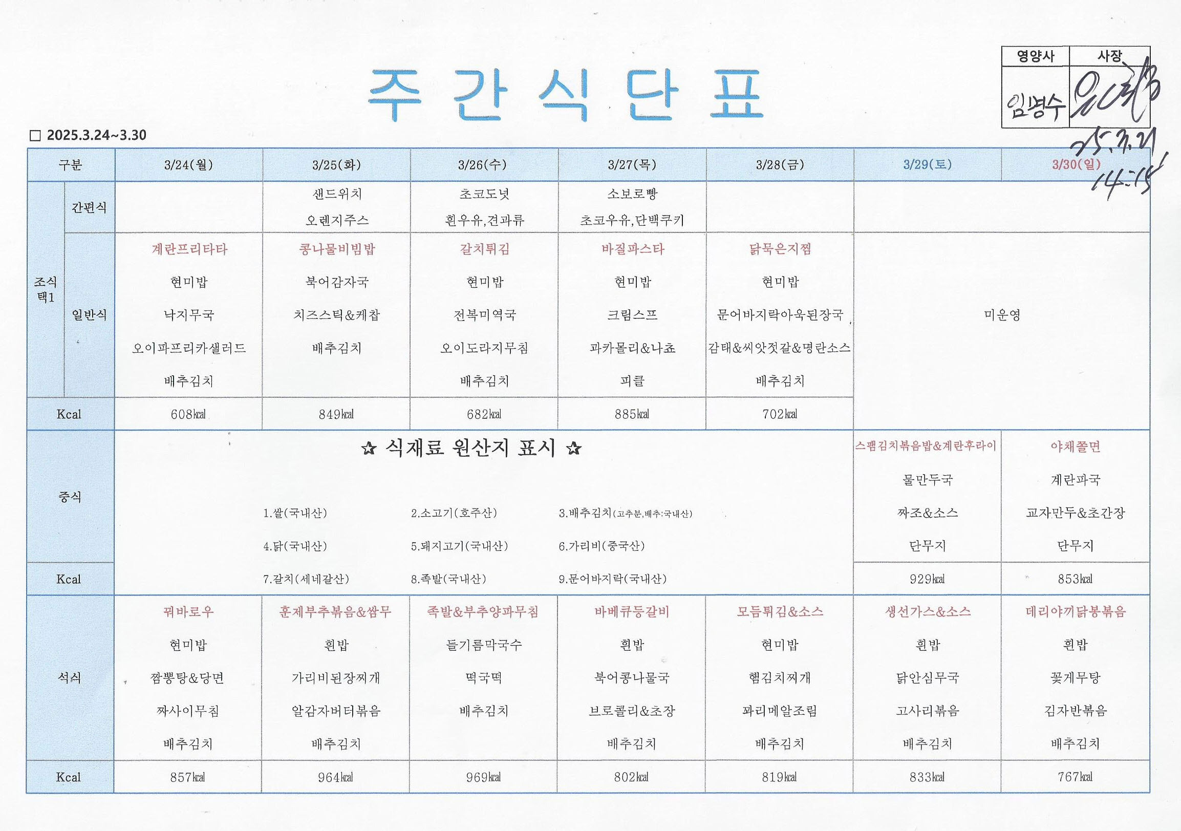24년3월24일~3월30일 작성자영양사|작성시간25.03.21|조회수353 목록 댓글 0 글자크기 작게가 글자크기 크게가 다음검색 현재 게시글 추가 기능 열기 북마크 공유하기 신고 센터로 신고 댓글 댓글 0 댓글쓰기 답글쓰기 댓글 리스트