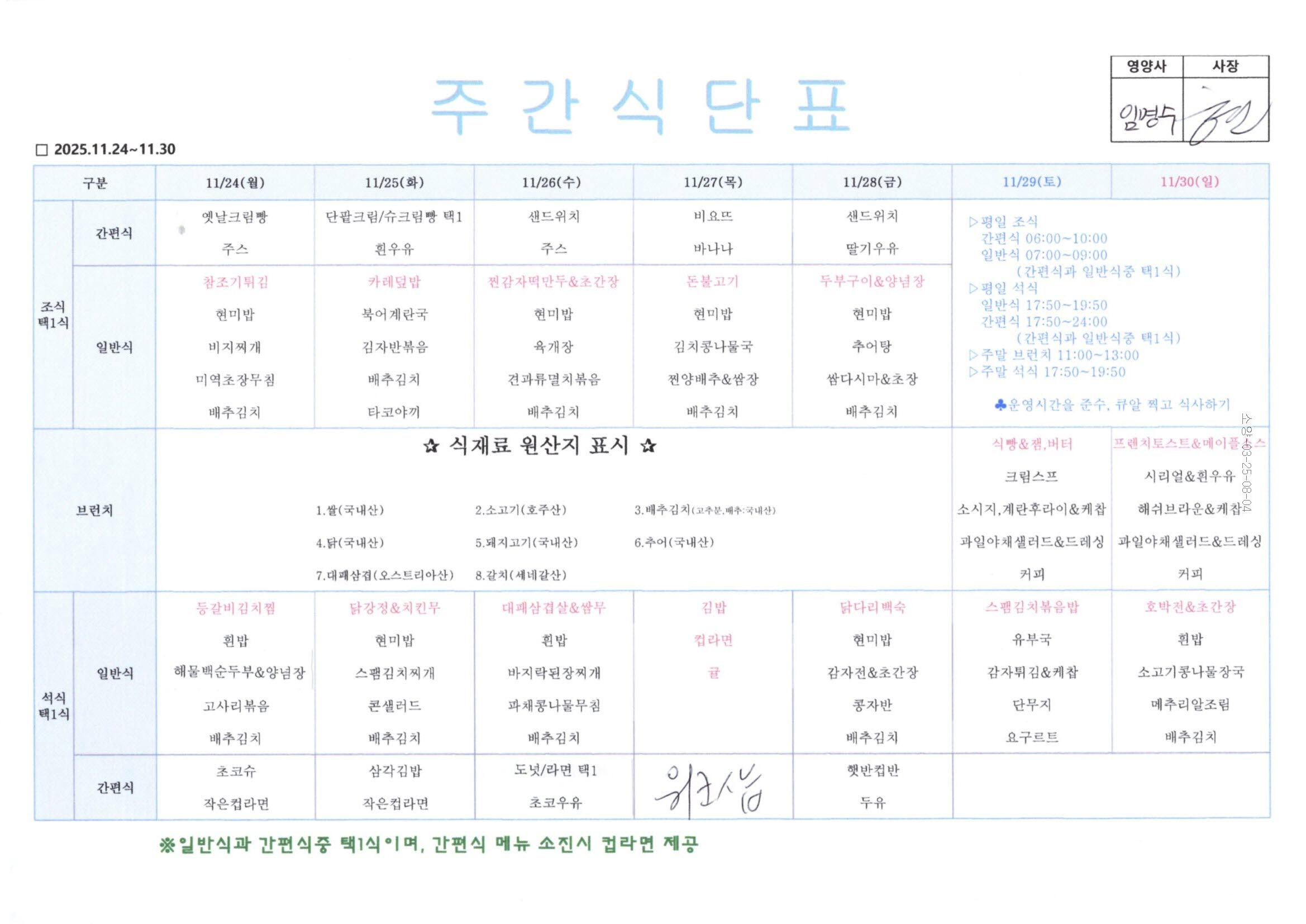 25년11월24일~11월30일 작성자영양사|작성시간25.11.19|조회수484 목록 댓글 0 글자크기 작게가 글자크기 크게가 다음검색 현재 게시글 추가 기능 열기 북마크 공유하기 신고 센터로 신고 댓글 댓글 0 댓글쓰기 답글쓰기 댓글 리스트