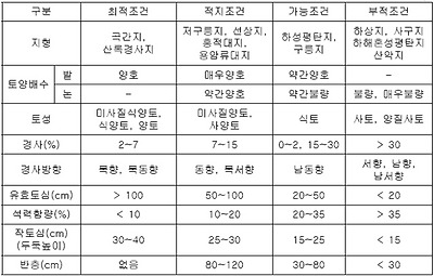 ○ 토양의 과습을 방지해야 한다. 예정지 선정 시 비가 오면 지표에 물이 고이는 과습지는
