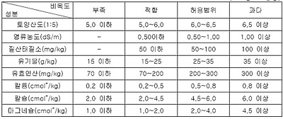 ○ 염류농도 : 0.50 dS/m이하