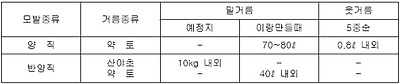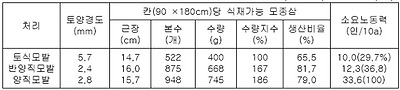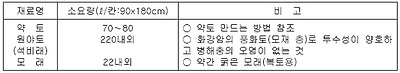 ○ 모밭시비 : 양직묘포 약토 칸당 70∼80리터