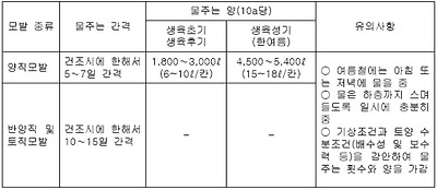 로 관수, 관수량은 칸(90×180cm)당 6∼10리터