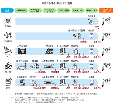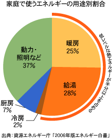 <그림 : 가정에서 사용하는 에너지의 용도별 역할 - 일본의 예>