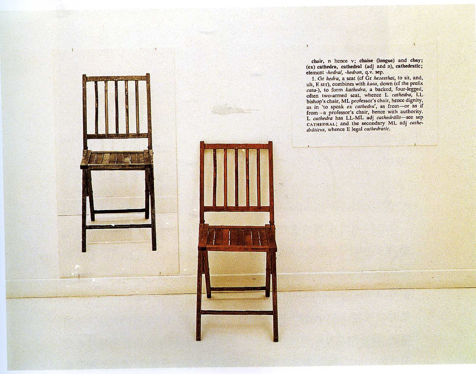 (미술에 그림으로 그린 의자, 실제의 의자, 의자를 사전에서 설명한 내용을 그대로 가져와서