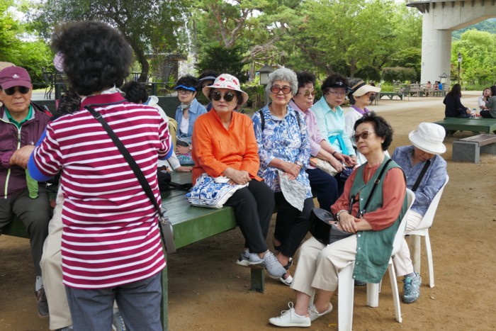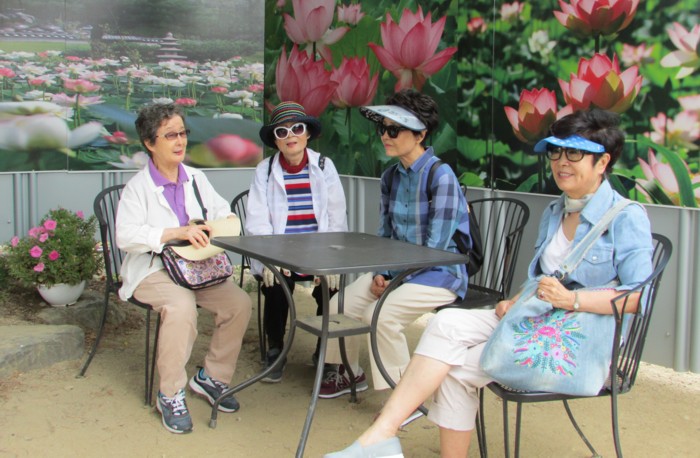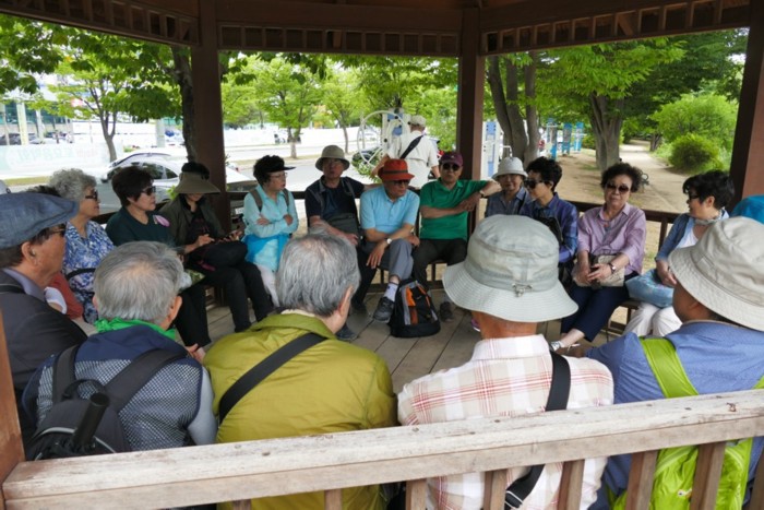 정자에 앉아 이야기도 나누고