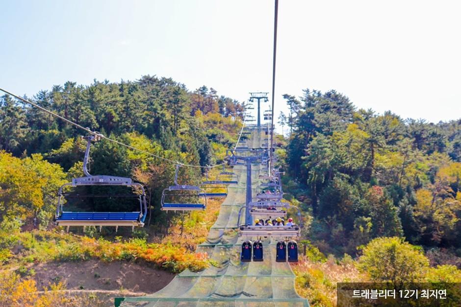 아래로는 구불구불한 루지 탑승 코스가 펼쳐져 기대감이 높아지는데요.