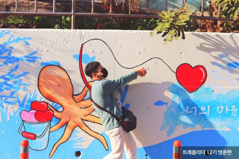 산책하며 사진 찍기 좋은 벽화로 가득하다.