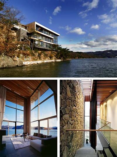 - 거실 천장 높이를 7.6m로 만들어 창밖으로 청평호의 모습이