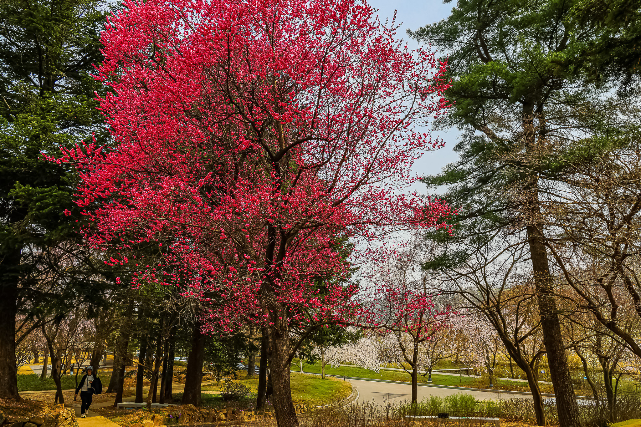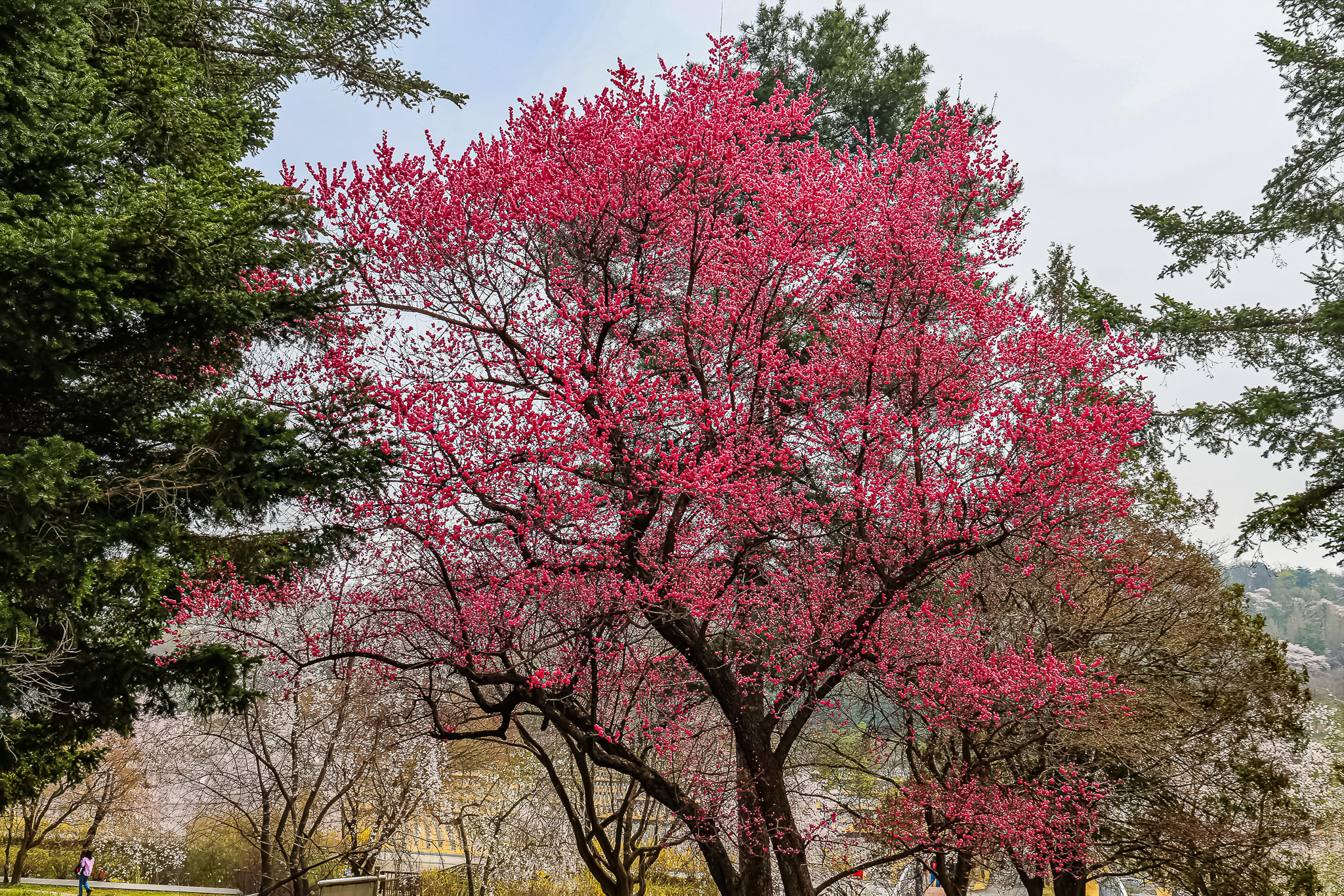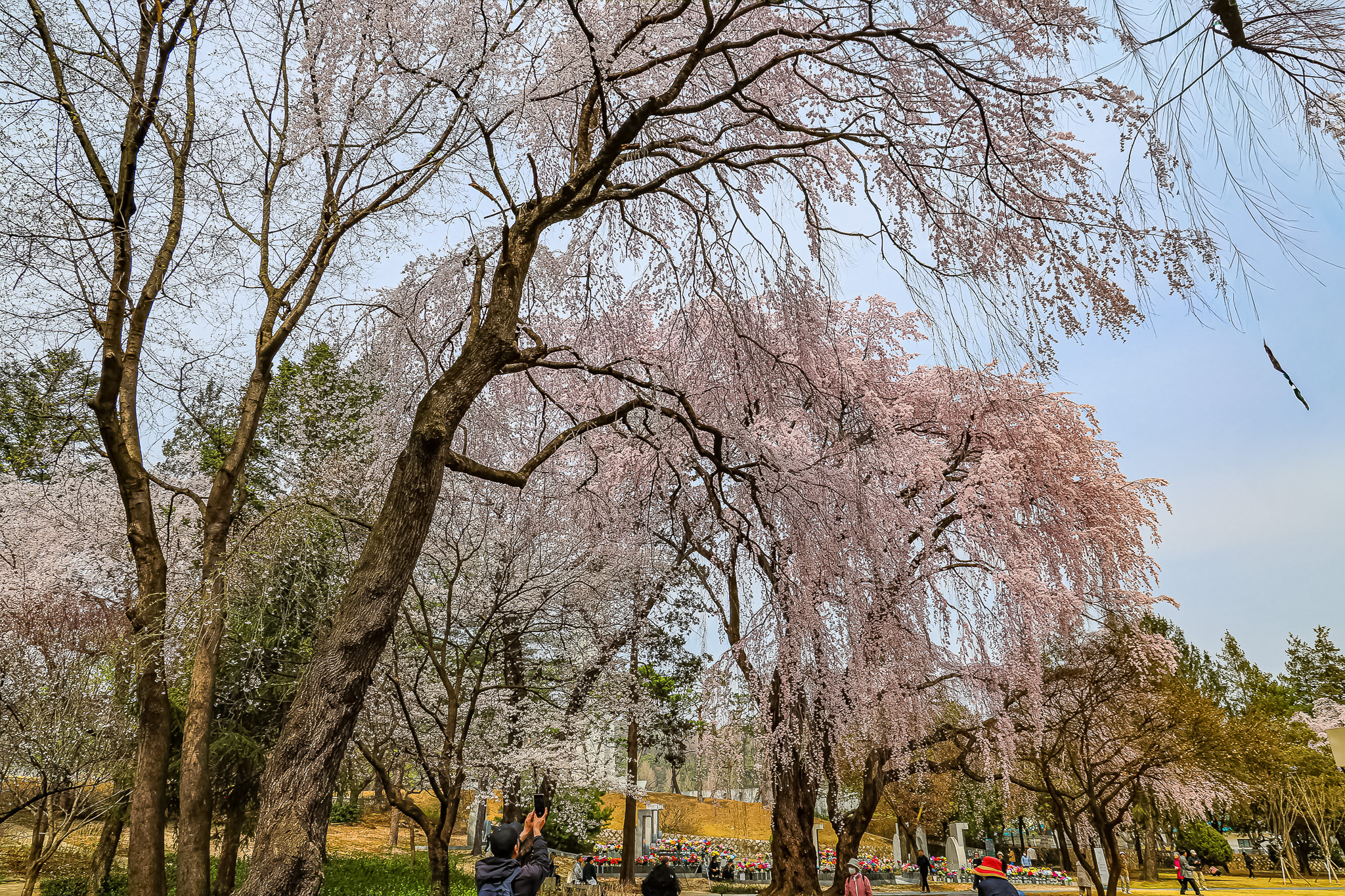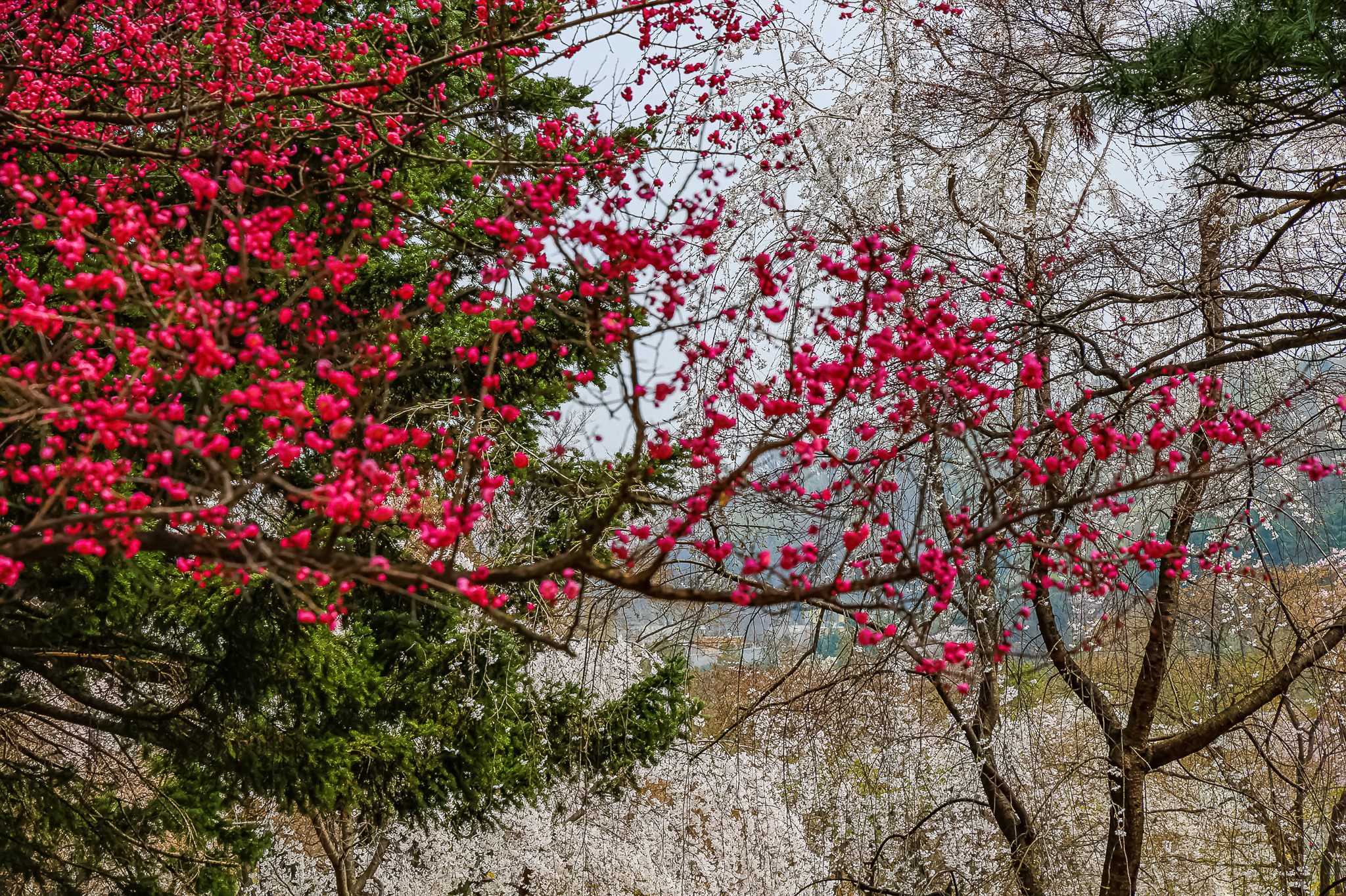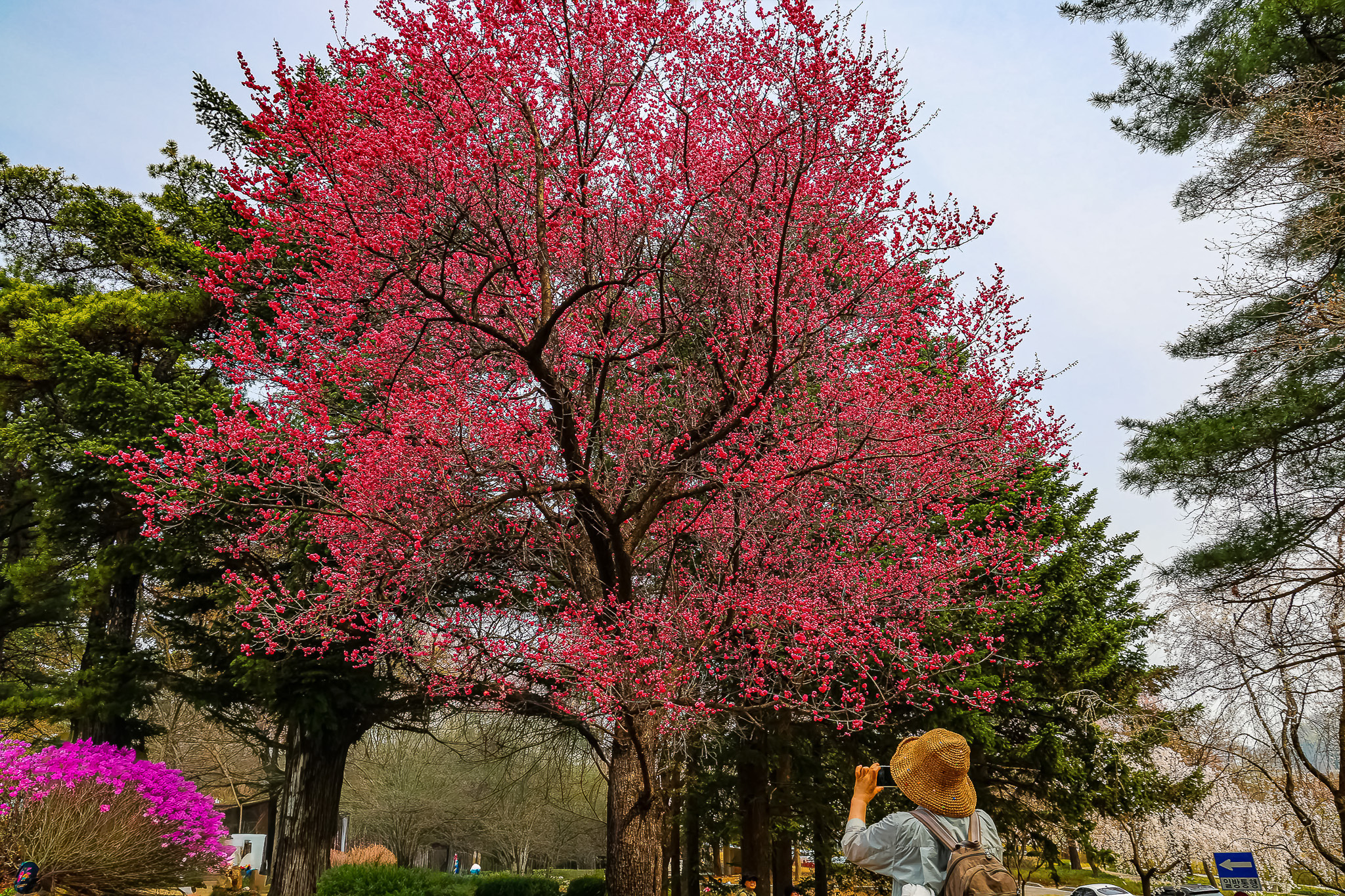 현충원 수양벚꽃과홍매화 화조도