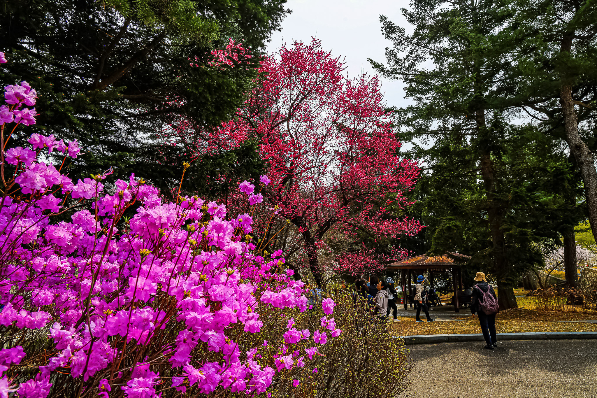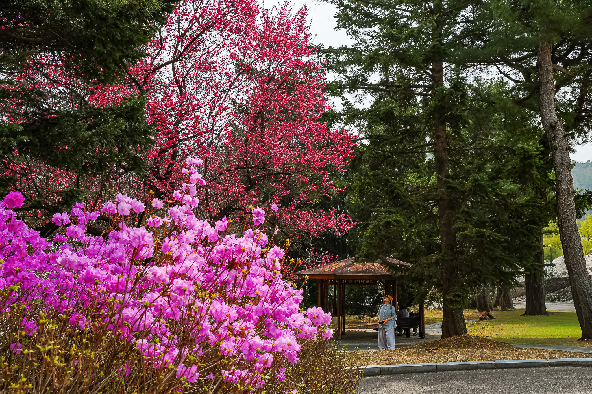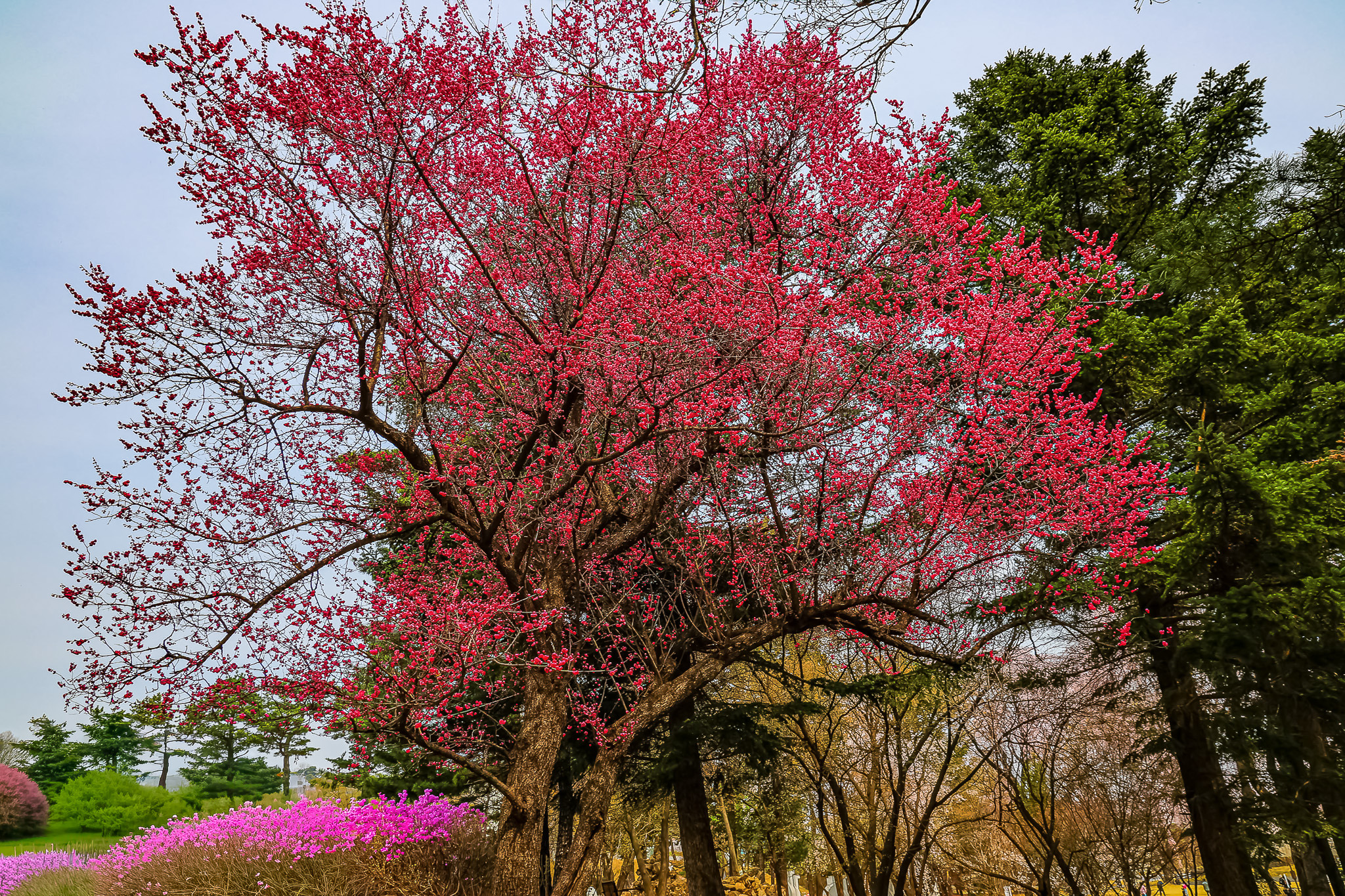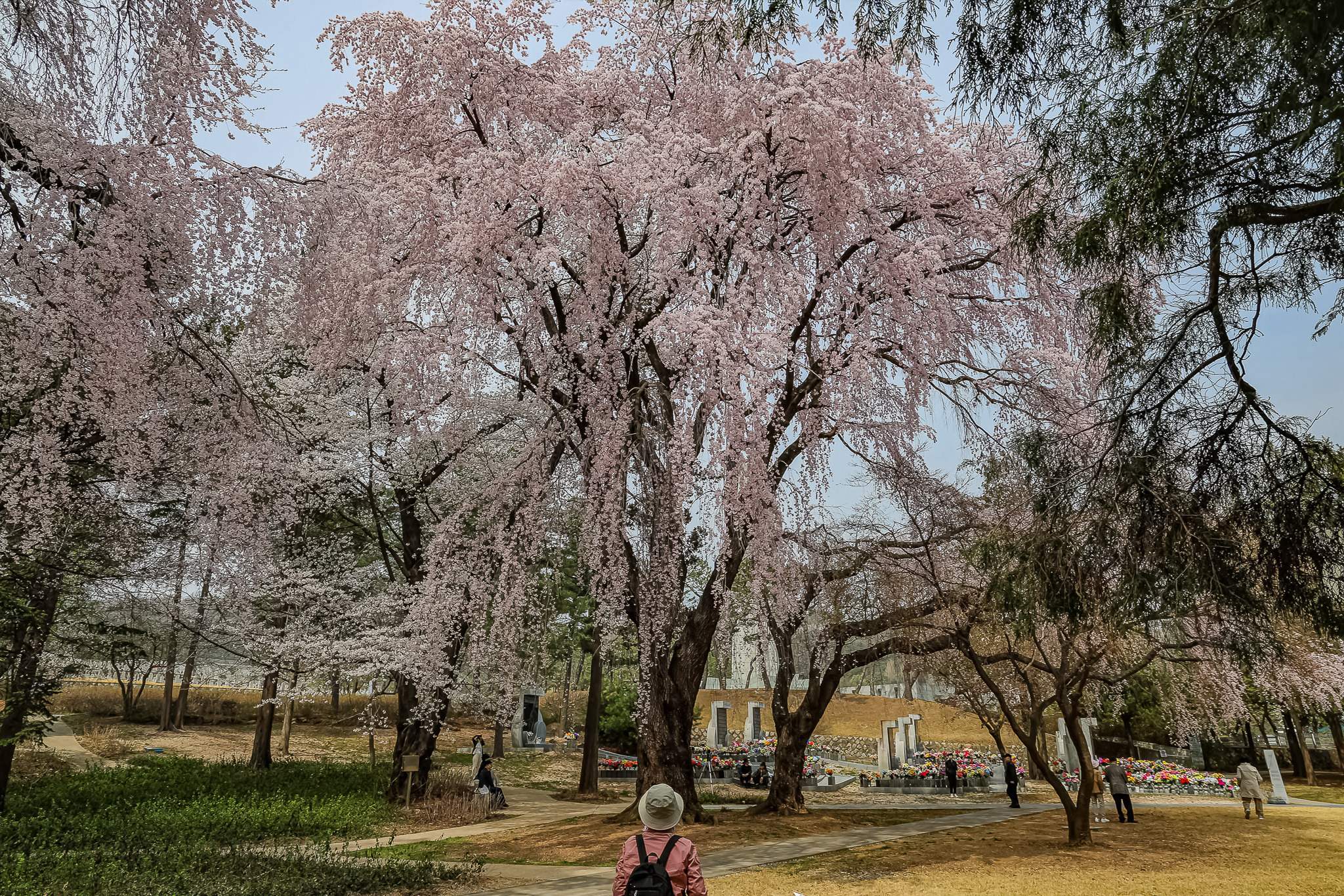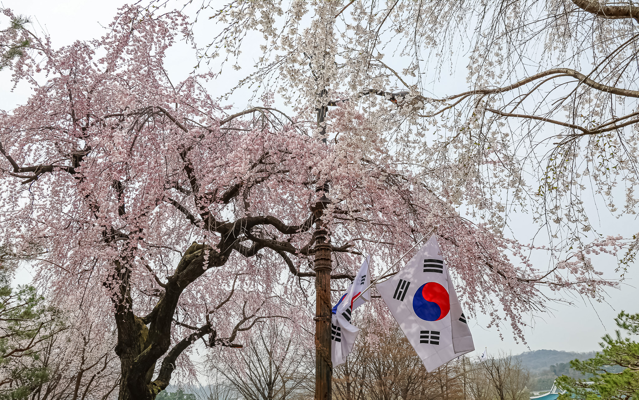 현충원 수양벚꽃과홍매화 화조도