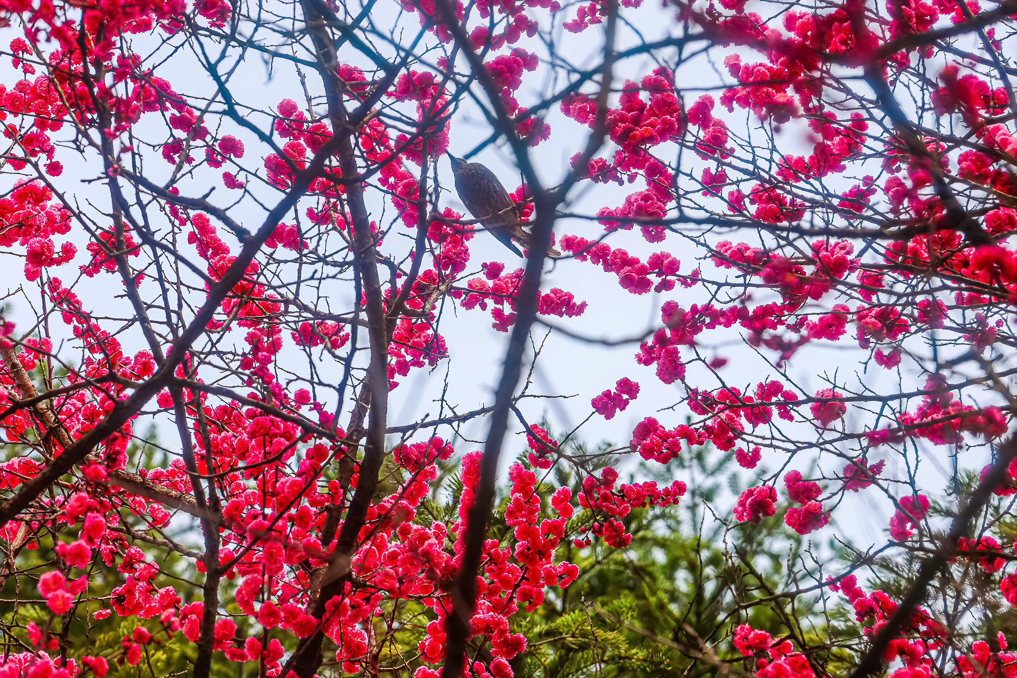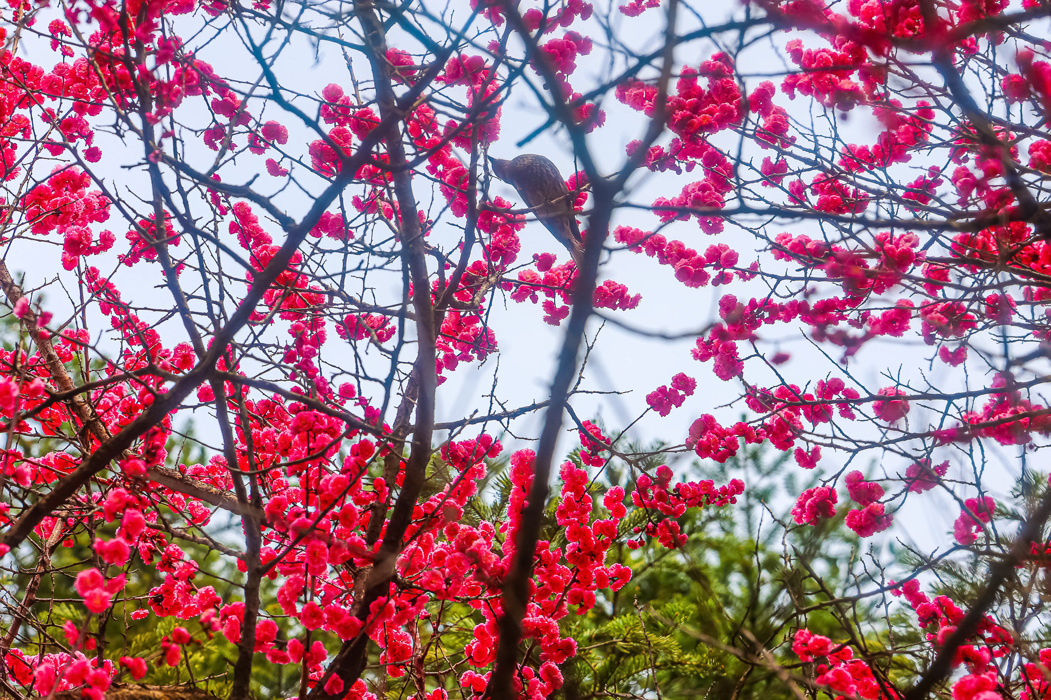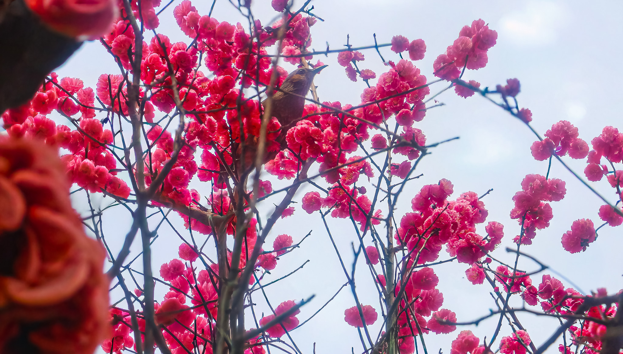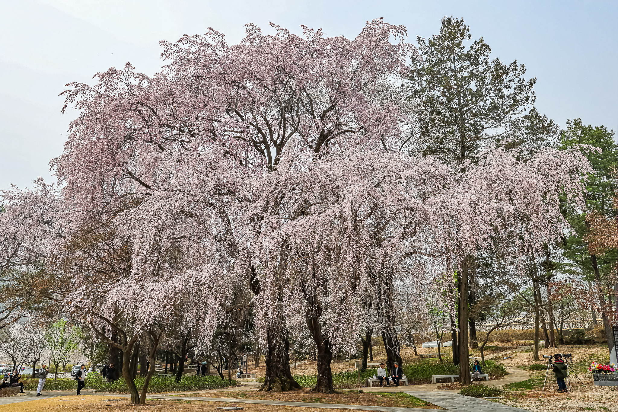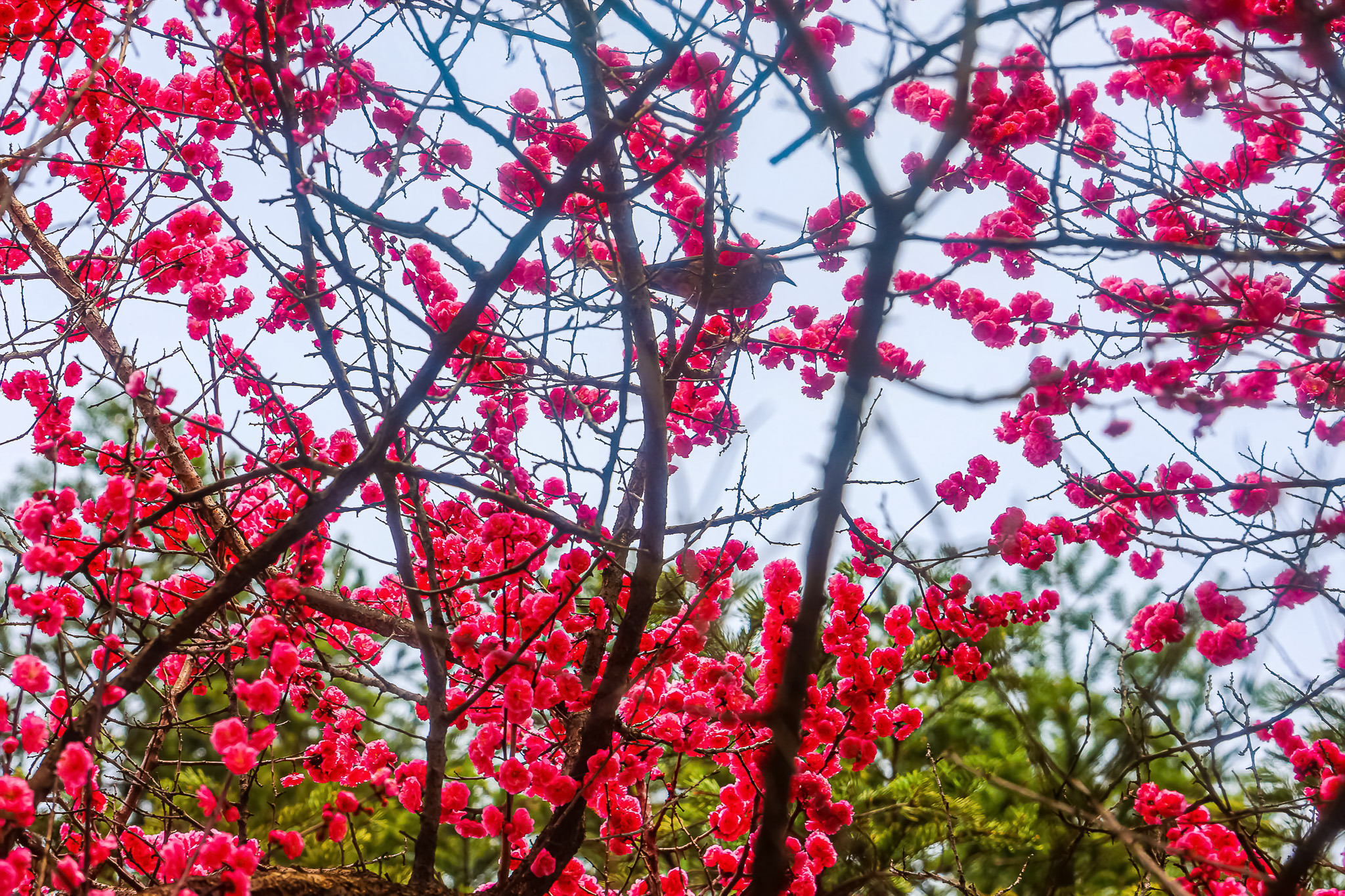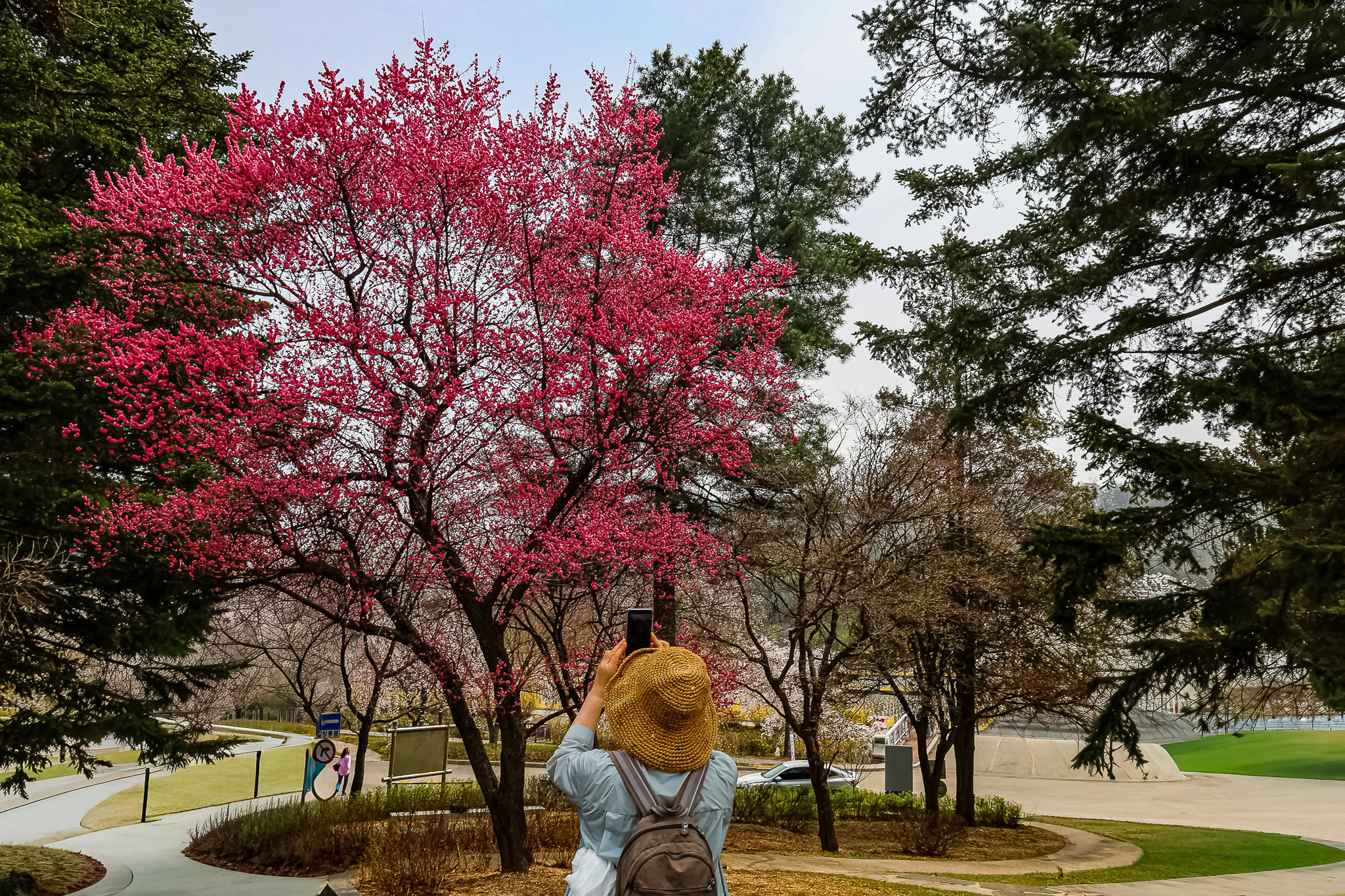 현충원 수양벚꽃과홍매화 화조도