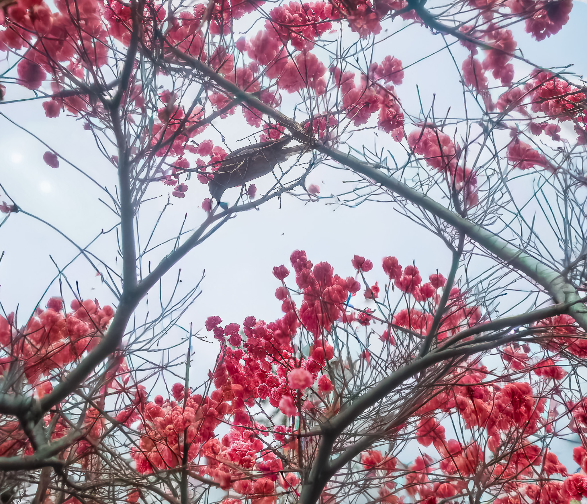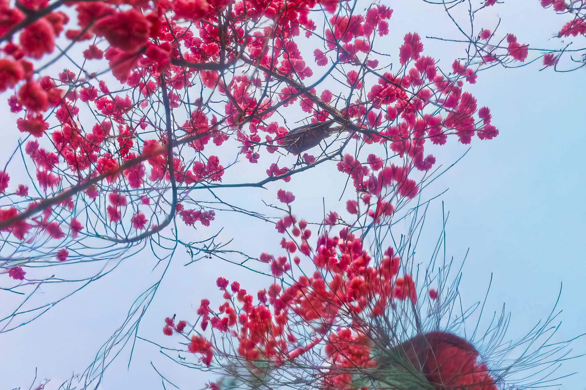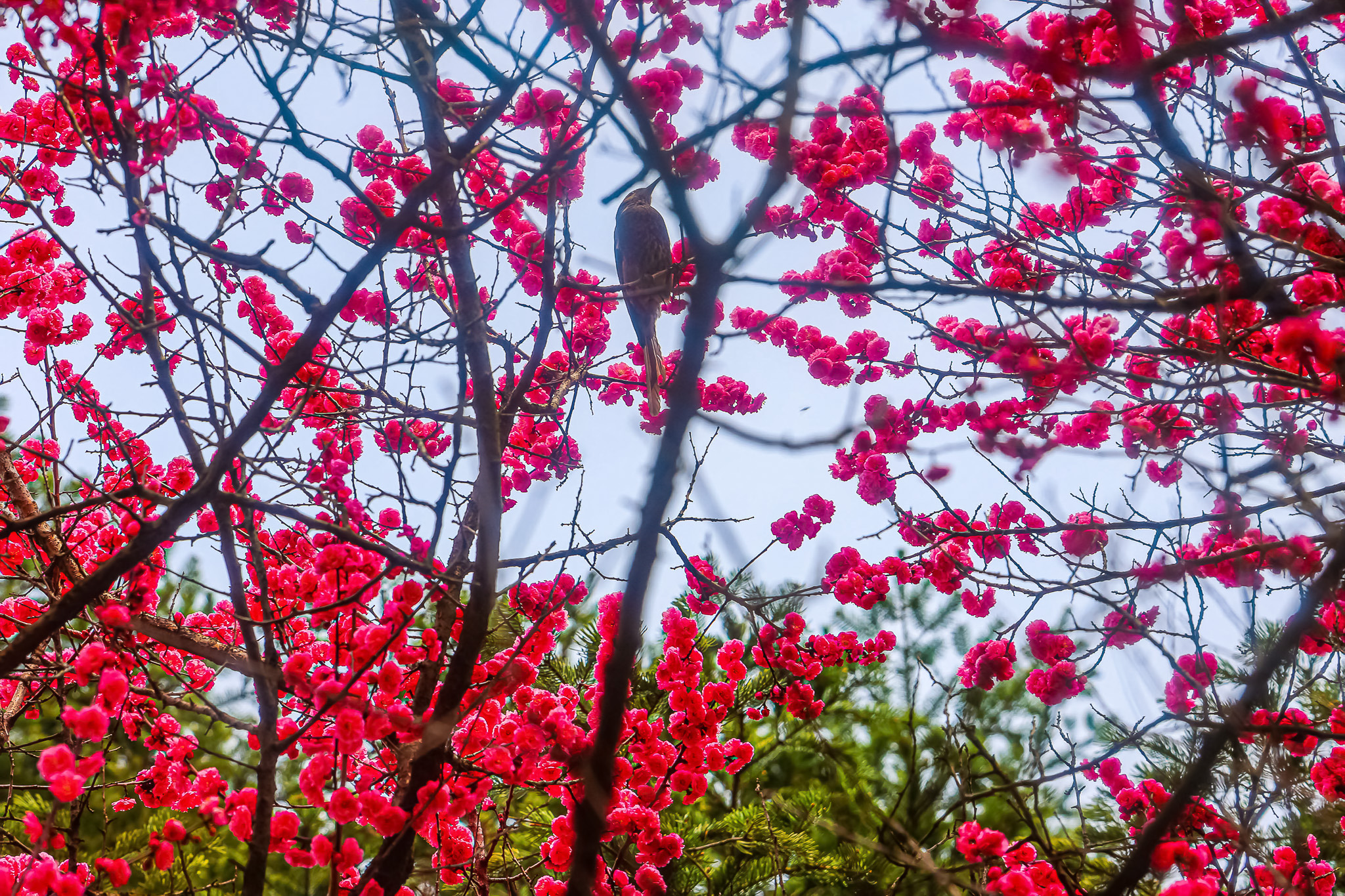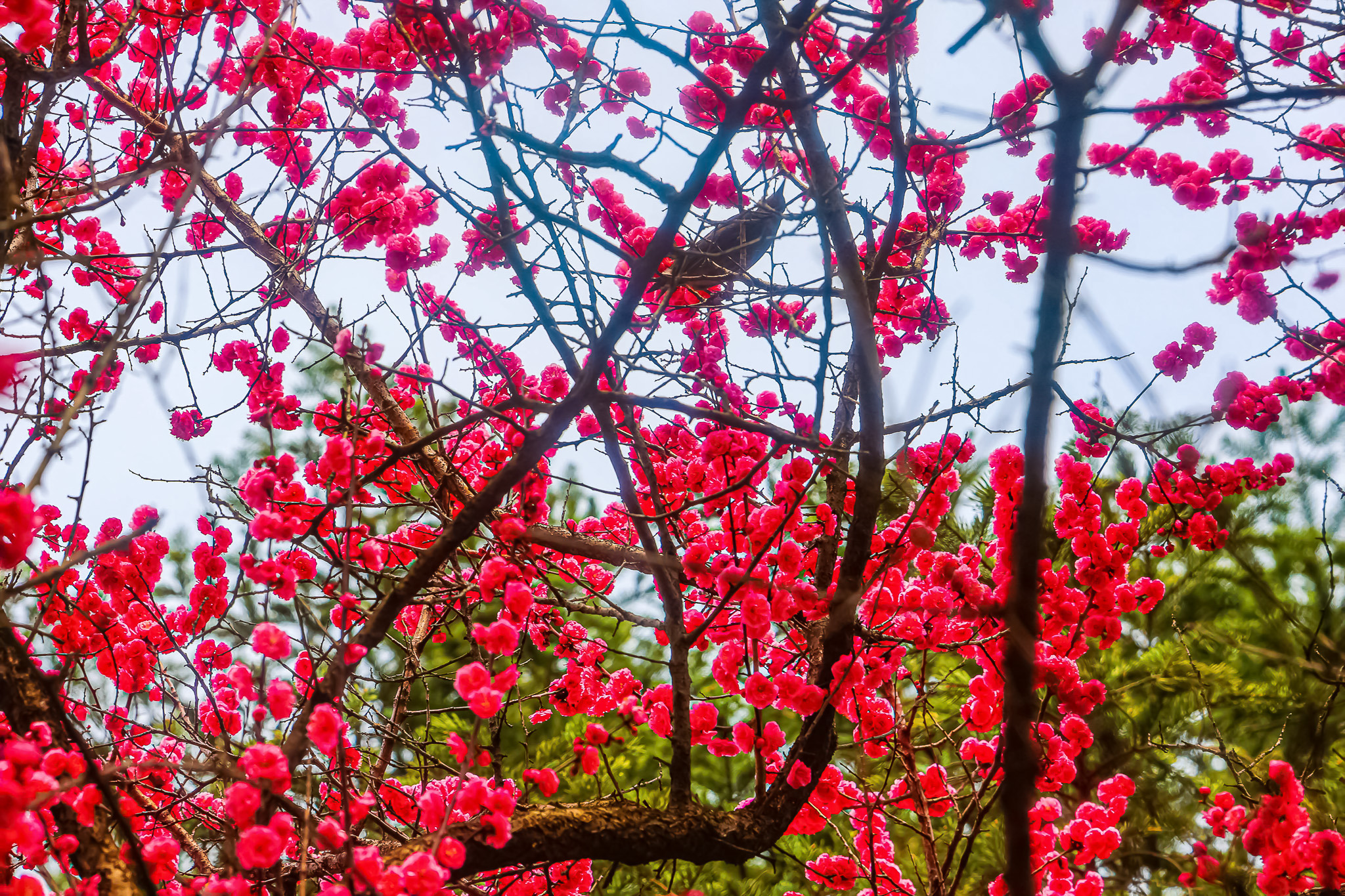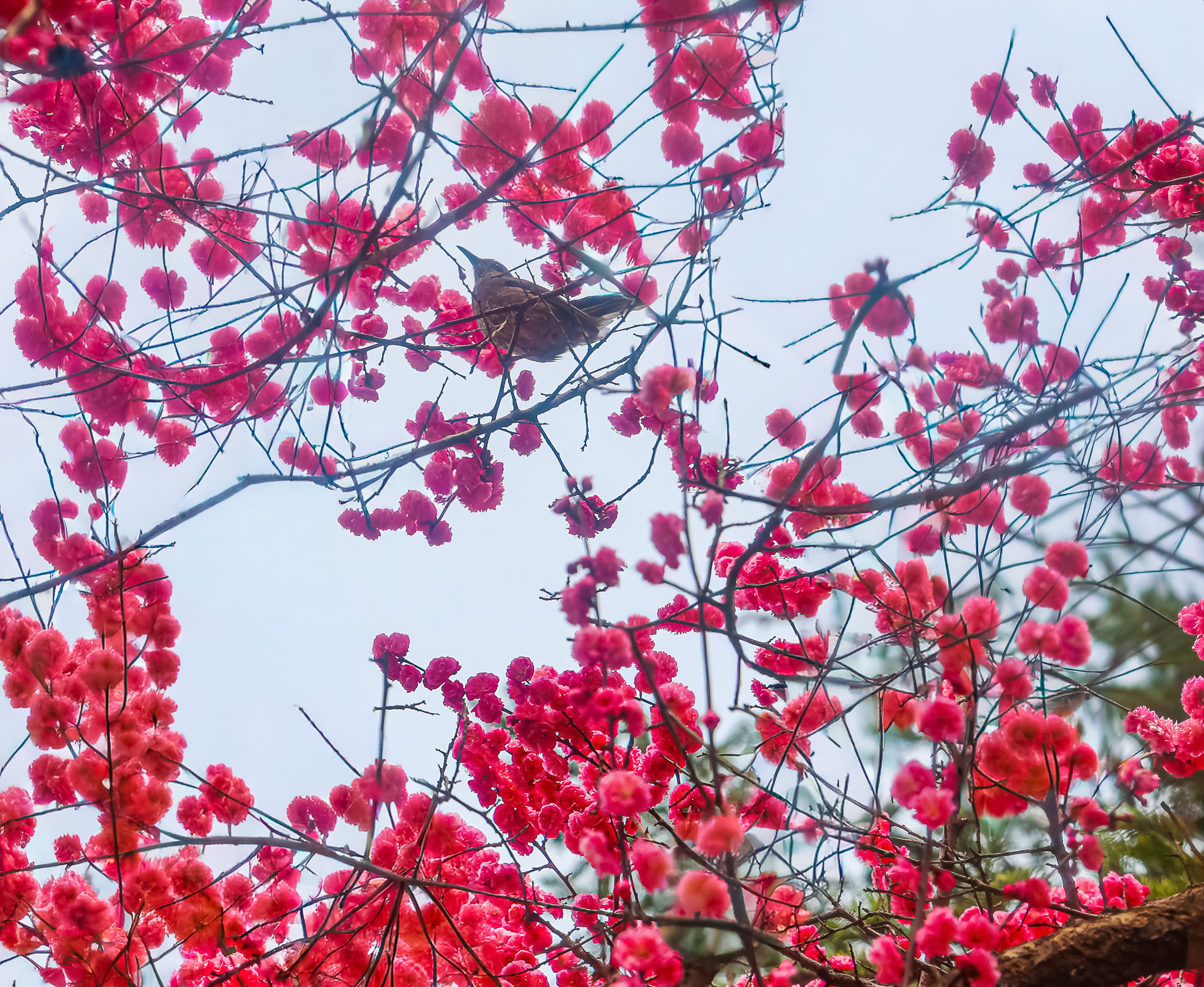 현충원 수양벚꽃과홍매화 화조도