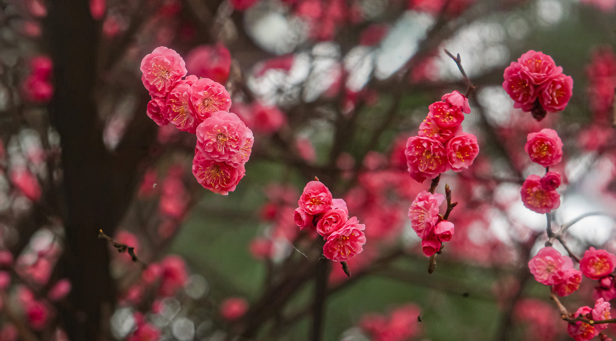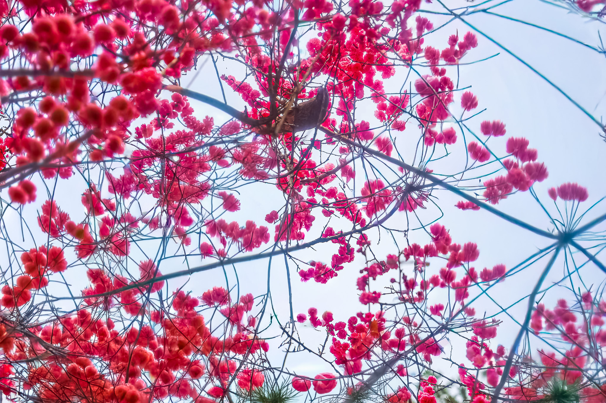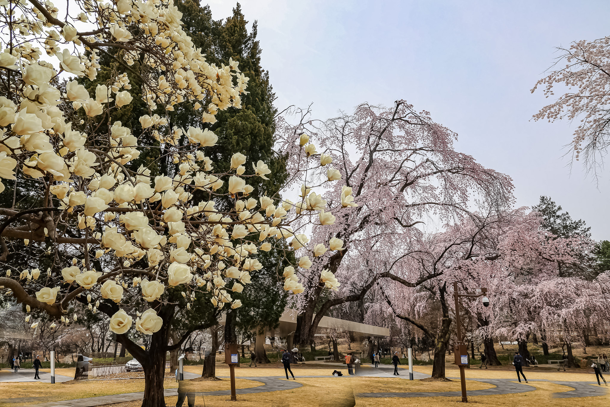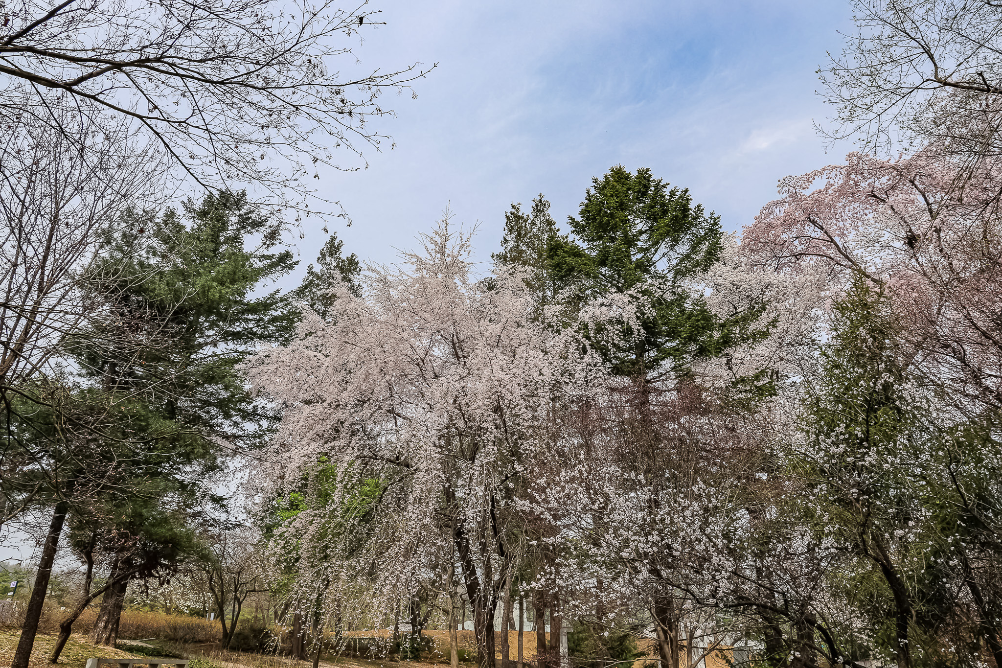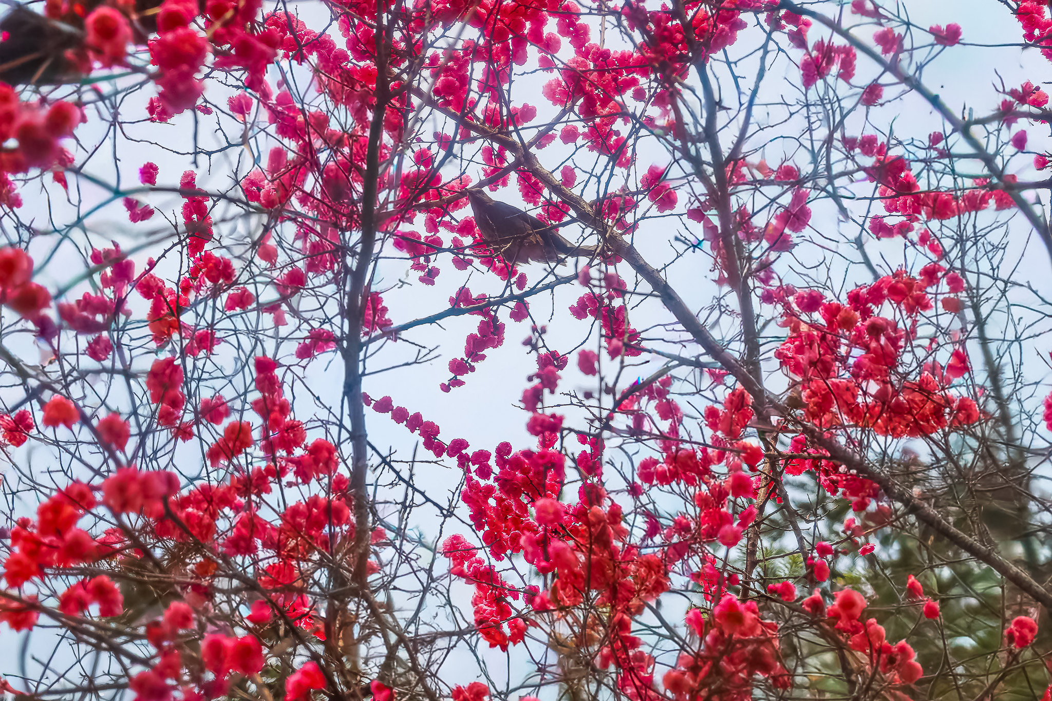 현충원 수양벚꽃과홍매화 화조도