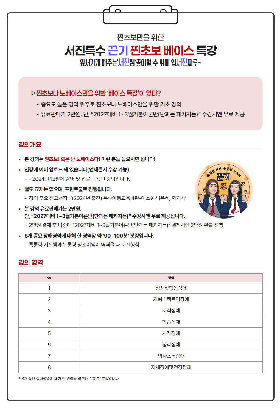 [G스쿨][서진 특수] 끈기 찐초보 베이스 특강 상세 강의 계획 안내 작성자G스쿨|작성시간25.12.19|조회수101 목록 댓글 2 글자크기 작게가 글자크기 크게가 안녕하세요. G스쿨입니다. 정말 찐초보다! 베이스가 전혀 없는 분들을 위한 특강!!서진 특수 끈기 찐초보 베이스 특강 안내드립니다. 지금 바로 시작하세요! [수강신청 바로 가기] 다음검색 현재 게시글 추가 기능 열기 북마크 공유하기 신고 센터로 신고 댓글 댓글 2 댓글쓰기 답글쓰기 댓글 리스트 작성자진니찐 | 작성시간 25.12.19 기존에 올라와있는 2025 강의 수강하면 되는건가요? 답댓글 작성자25-K-줄줄 | 작성시간 25.12.20 네. 댓글 전체보기