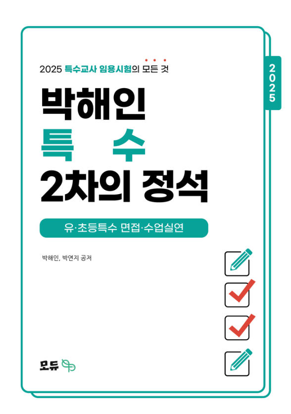 교재는 작년에 출간된 <2025 박해인 특수 2차의 정석(유·초등특수 면접·수업실연)>과 추가 자료로 진행됩니다.
