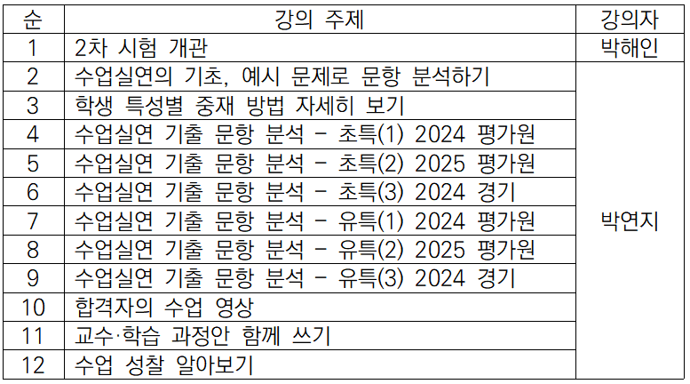 작성자준모입니댜 작성시간 25.11.17 안녕하세요, 선생님 ! 혹시 올해부터 경기도 2차 시험 변형이 이루어지는 걸로 알고 있는데, 그 부분도 다루어주시는지 궁금합니다!!