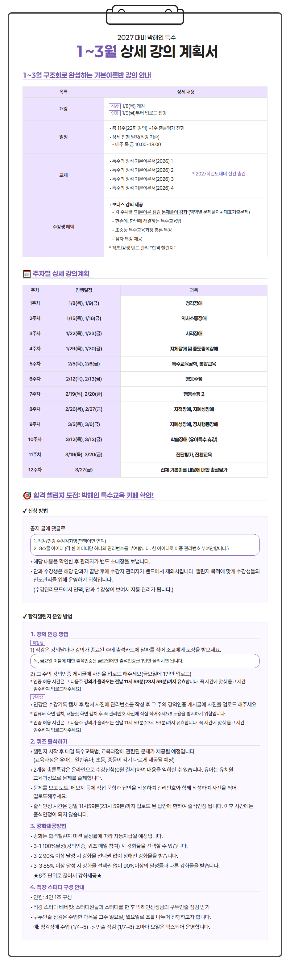 박해인 특수 1~3월 구조화로 완성하는 기본이론반 상세 강의계획입니다.