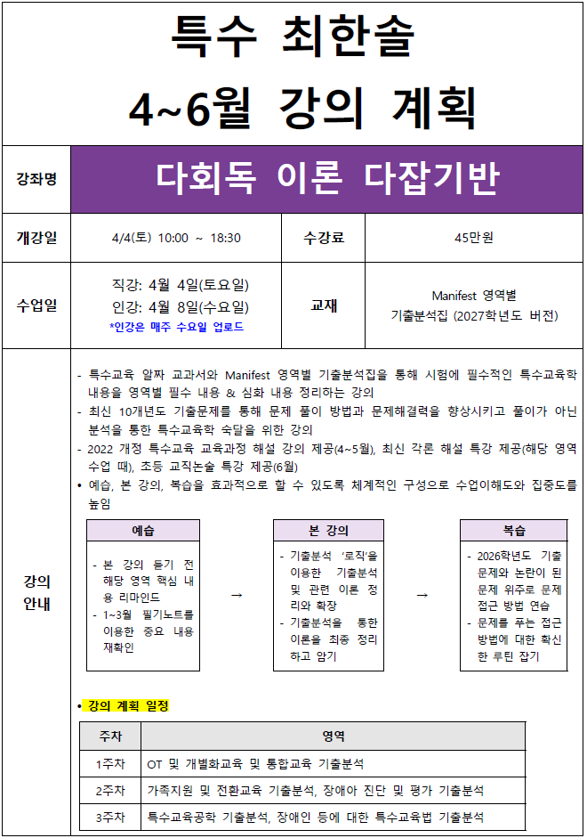 2027학년도 대비 '4~6월 중등특수/초등특수 다회독 이론 다잡기반' 안내드립니다.