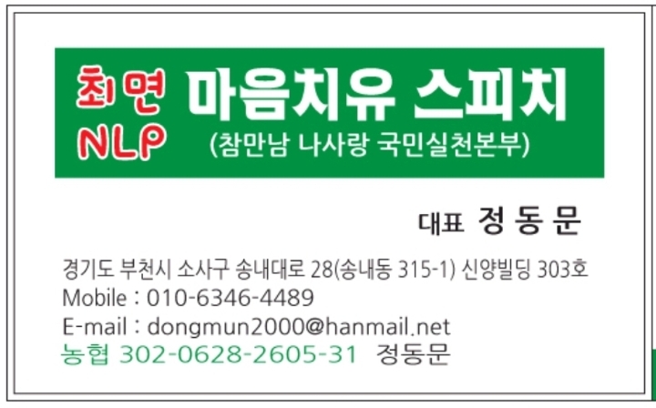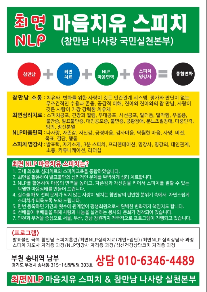 [무료청강환영]인천부천 발표불안극복 최면NLP 마음치유(심리치료) 스피치훈련안내