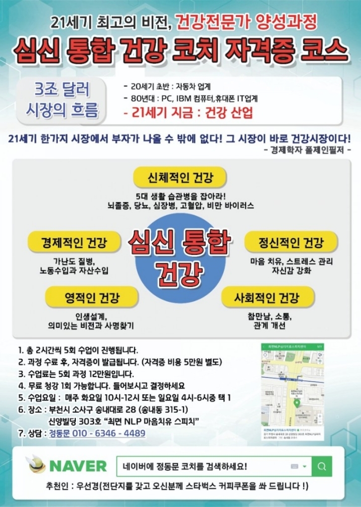 심리상담과 건강상담의 통합! 심신통합건강코치 자격증 교육 안내