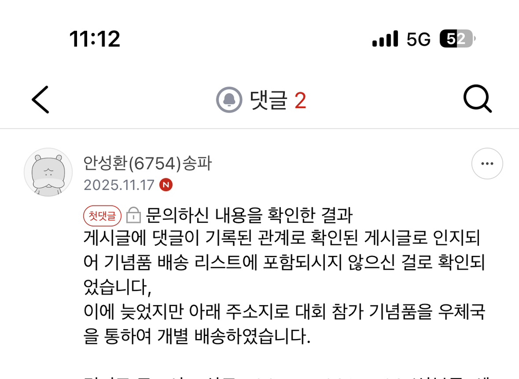 연맹 누락분이라,,여름에 받아야하는데 누락되어 이제 발 송을 따로 하니 저만 수취부담되는건지 문의합니다