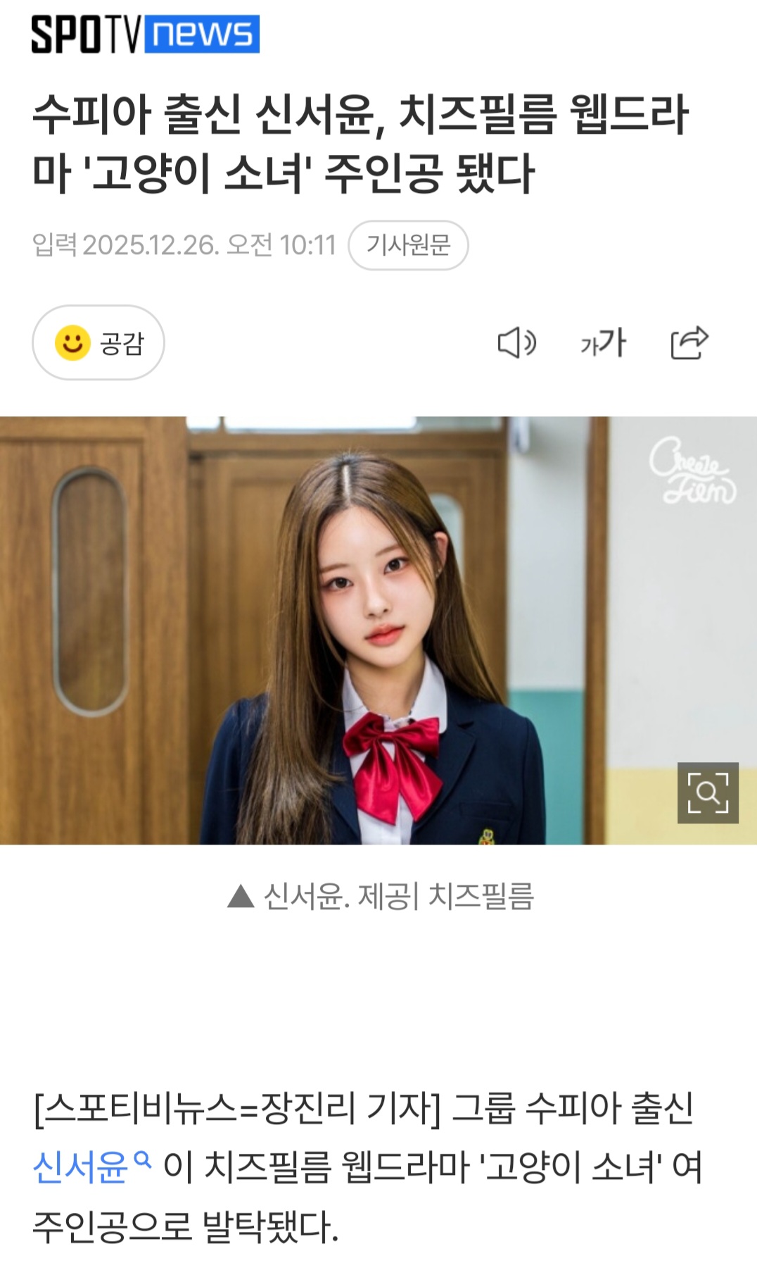 고양이소녀 신서윤😻 작성자세라사랑|작성시간25.12.26|조회수47 목록 댓글 0 글자크기 작게가 글자크기 크게가 컨셉이 딱이야ㅎㅎ 다음검색 현재 게시글 추가 기능 열기 북마크 공유하기 신고 센터로 신고 댓글 댓글 0 댓글쓰기 답글쓰기 댓글 리스트