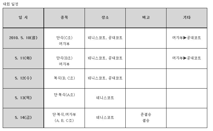 총장배 대회 일정 작성자이철화|작성시간10.05.03|조회수16 목록 댓글 0 글자크기 작게가 글자크기 크게가 이번 총장배 대회 일정입니다. 참고하셔서 많이들 나가시기를^^ 다음검색 현재 게시글 추가 기능 열기 북마크 공유하기 신고 센터로 신고 댓글 댓글 0 댓글쓰기 답글쓰기 댓글 리스트