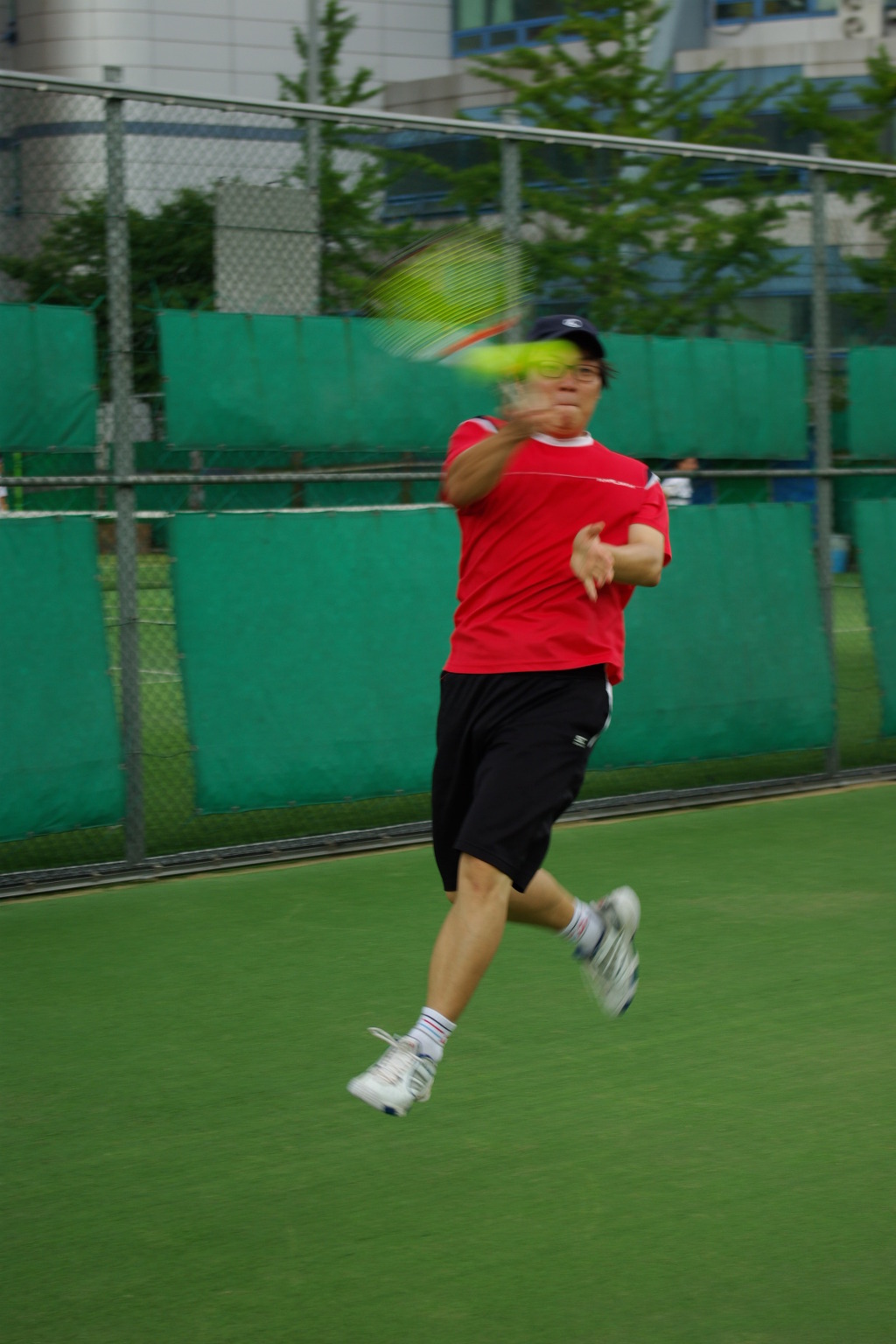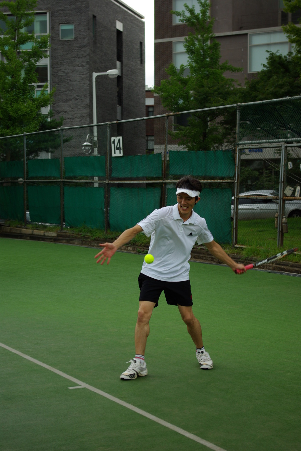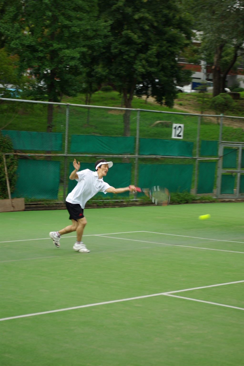 온 몸으로 왼속 백헨드를 날리시는 유진선 선배님