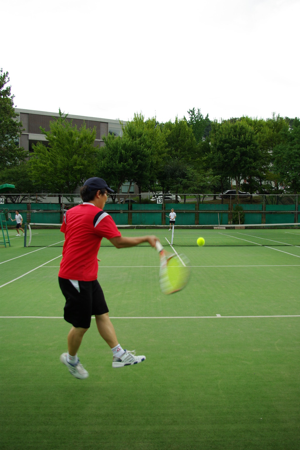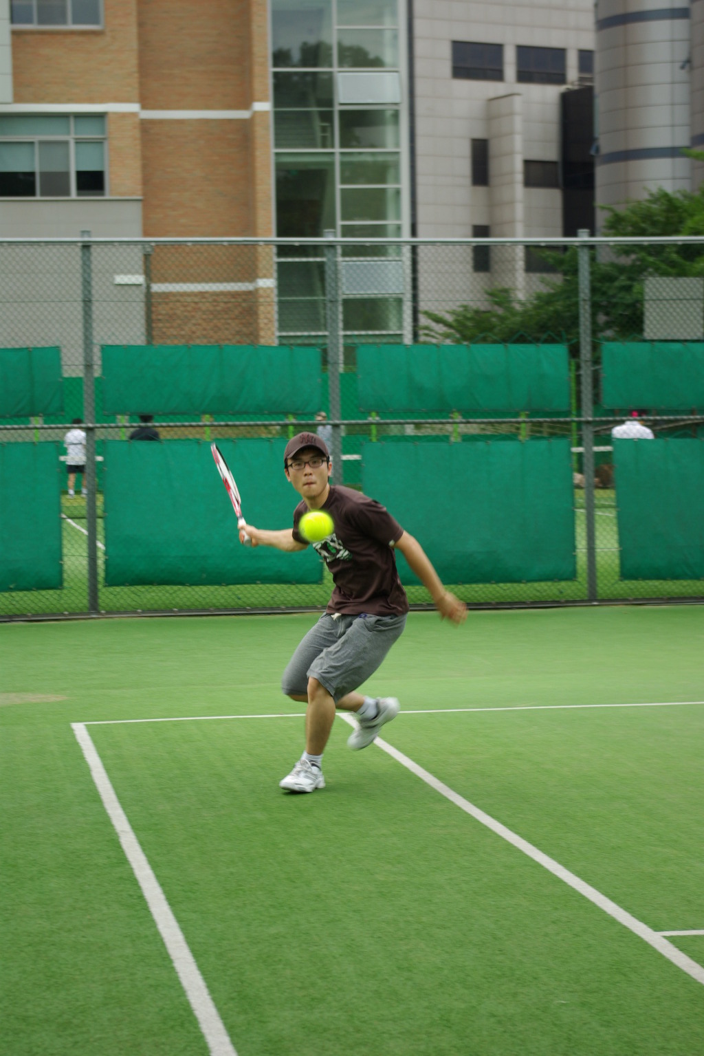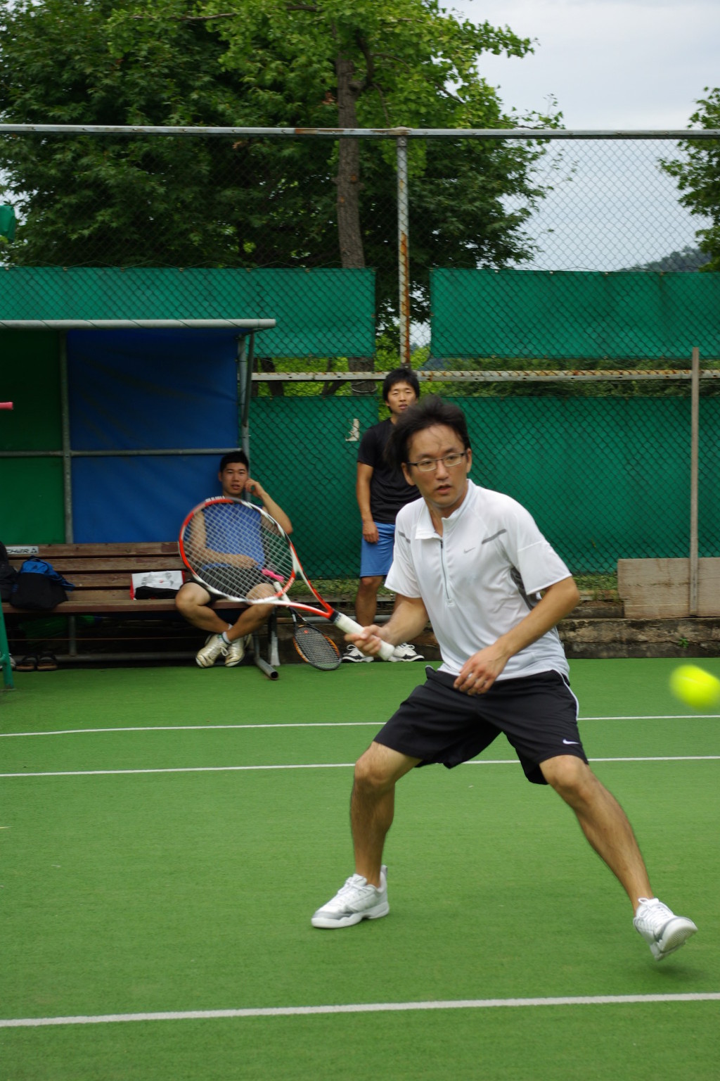 온 몸으로 왼속 백헨드를 날리시는 유진선 선배님