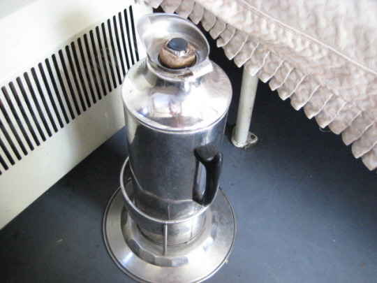 탁자 밑에는 온수병이 있습니다. 기차 한켠에 있는 온수대에서 물을 담아 라면 등을 드실 수 있어요.