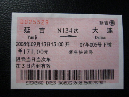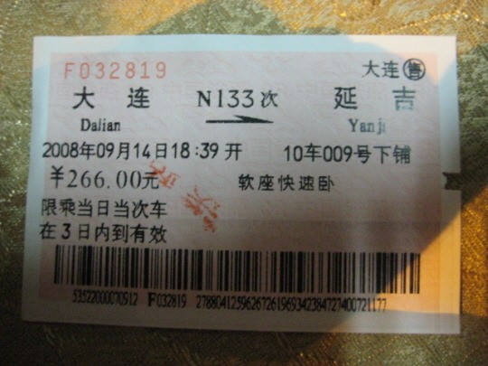 연길-대련간 열차표입니다.