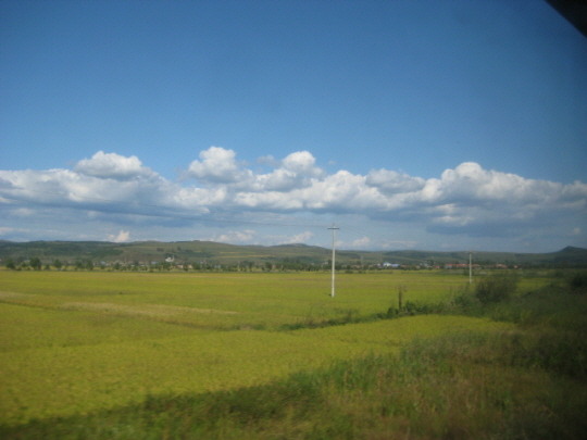 기차가 달리기 시작해서 연길외곽으로 나갔습니다.
