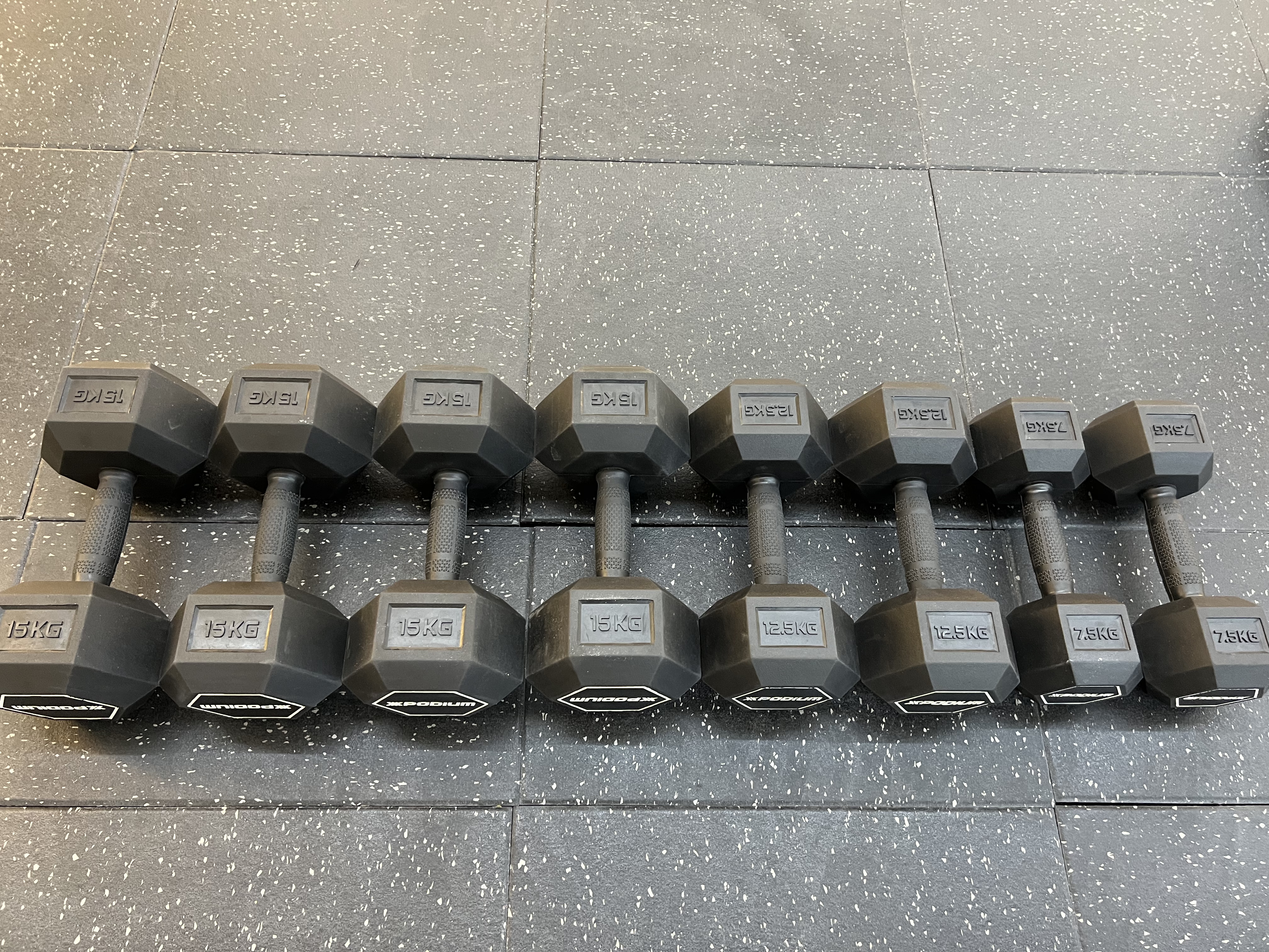 포디움 덤벨 7.5kg 1세트 / 12.5kg 1세트 / 15kg 2세트 판매합니다.