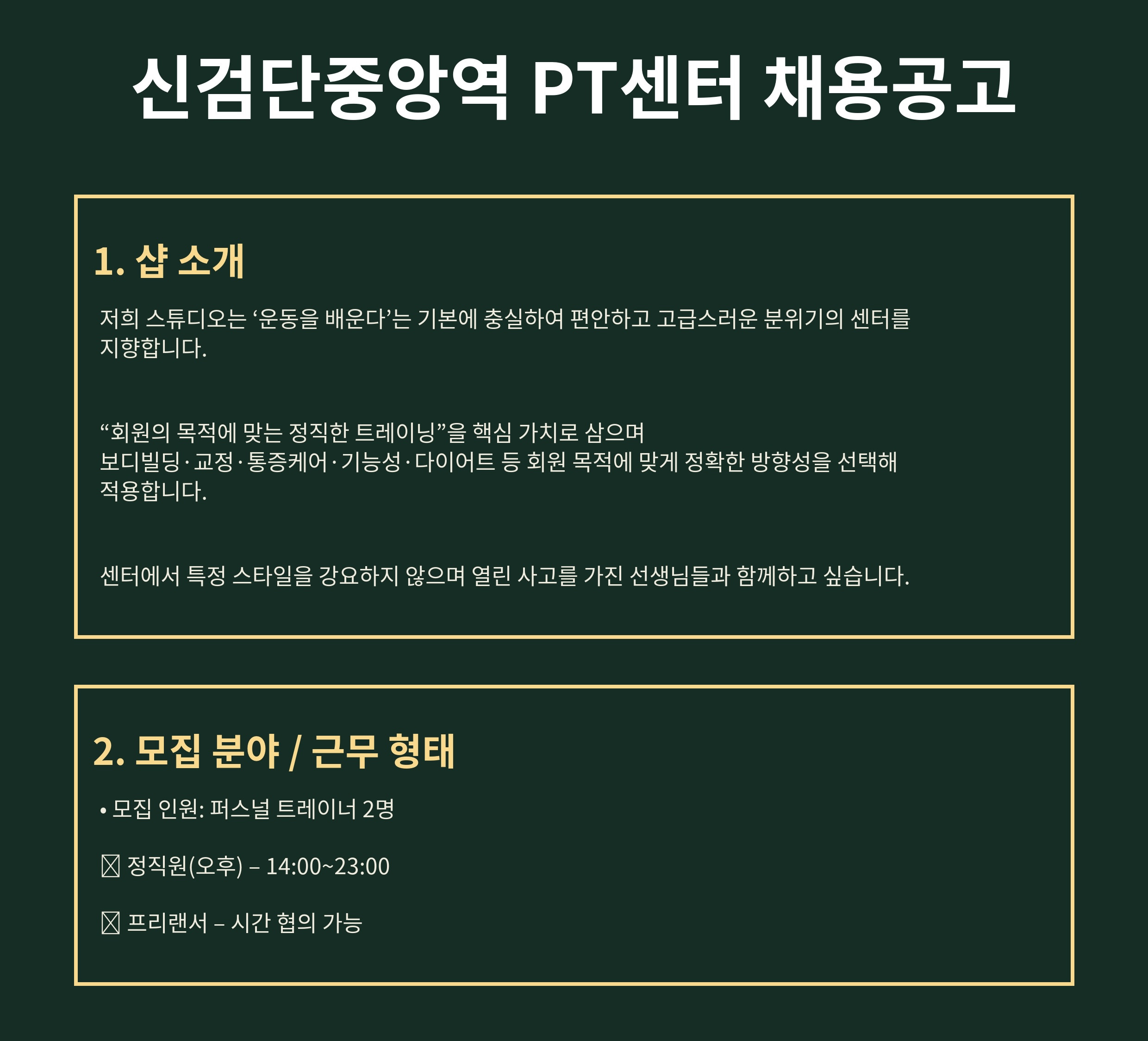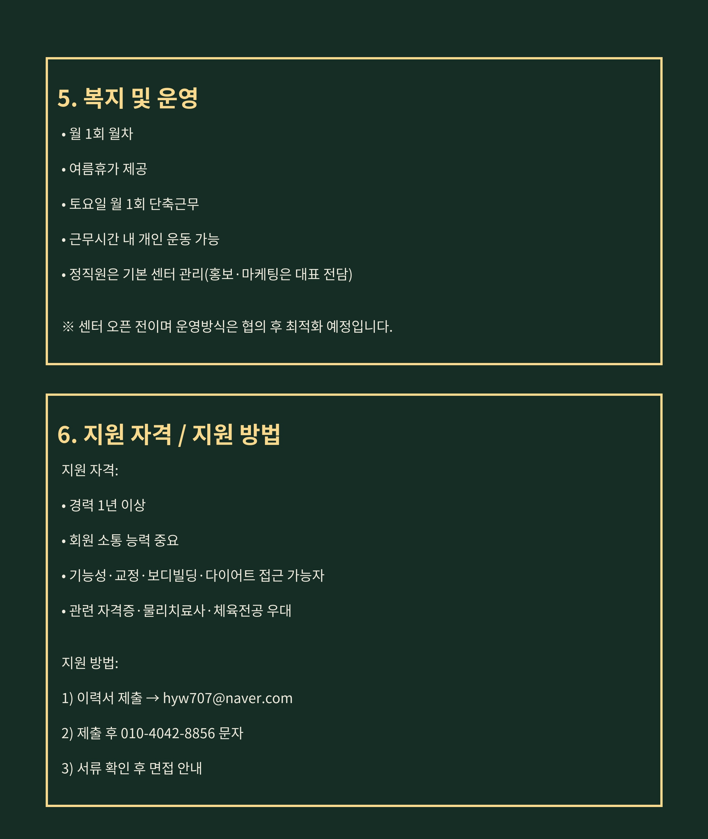 피트니스를 기반으로하여 선생님들의 지식을 활용하실 수 있는 선생님들을 가장 환영합니다.