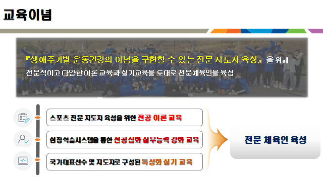 ☞ 스포츠교육 , 스포츠건강재활 , 스포츠레저산업 전공!