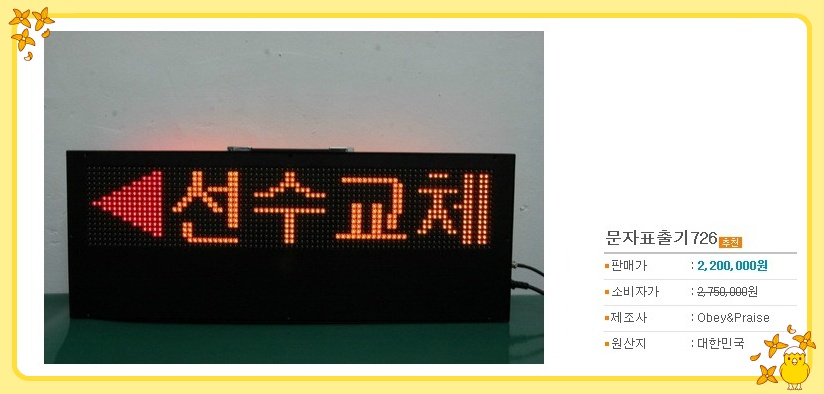 문자표출기 726 가로700 세로300 두께100 글자크기96미리 글자표현 작전타임 선수교체 공격권 작성자경희짱…─━☆|작성시간14.12.03|조회수42 목록 댓글 0 글자크기 작게가 글자크기 크게가 다음검색 현재 게시글 추가 기능 열기 북마크 공유하기 신고 센터로 신고 댓글 댓글 0 댓글쓰기 댓글 리스트