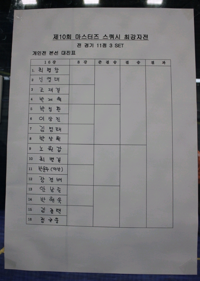 16강 본선진출,, 본선 16강경기는 11점 3셋 토너먼트