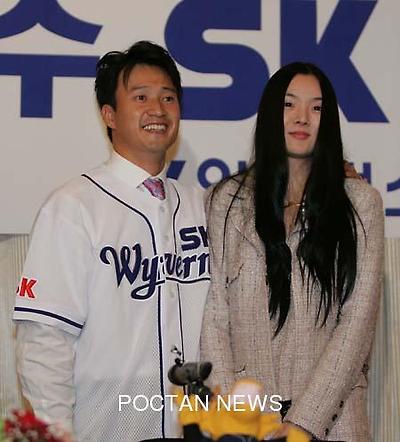 SK 입단식에서 약혼녀 김진희 씨를 전격 공개했다.