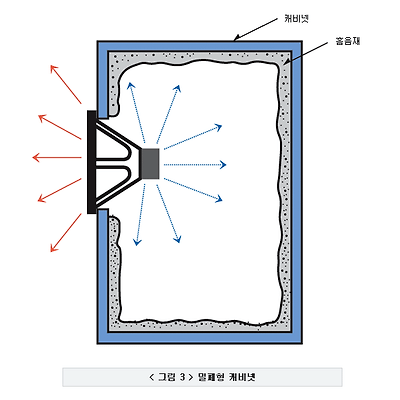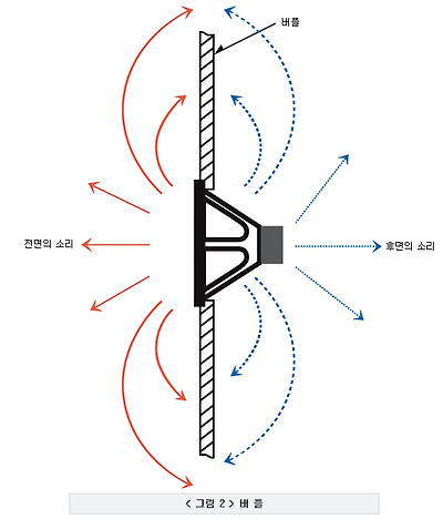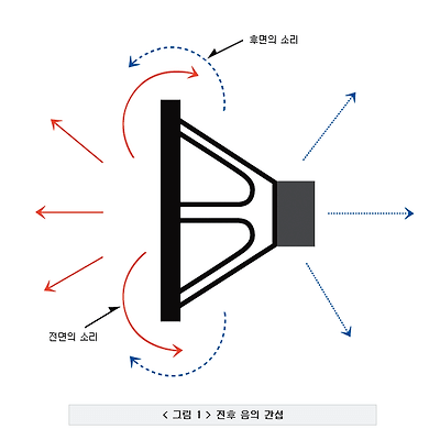 만일, 스피커 유닛을 인클로져에서 떼어 내어 밖으로 꺼낸 다음 스피커 유닛을 구동해 보면, 제 아무리 대단한 유닛이라 할지라도 인클로져에부착되어 있을 때보다 더 작은 음량으로 소리가 나거나, 또는 소리가 뒤틀리고 바르지 못한 소리를 듣게 된다.아래 그림을 보자.