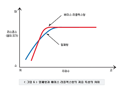 잘 설계되어진 밀폐형은 또한 근래 들어 고급 하이엔드 스피커들이 이런 형태로 많이 개발되면서 전성기를 구가하고 있다.그럼 대표적인 위의 두음량은 작아도 분리도가 높으며, 낮은 주파수까지 재생이 가능하며, 소리가 명료하고 맑아진다. 방식의 차이점을 비교해서 보면 아래와 같은 표로 비교할 수 있다.밀폐형은 저음이 더 완만하고 베이스 리플렉스형은 더 낮은 저음 주파수의 특성을 보여준다.