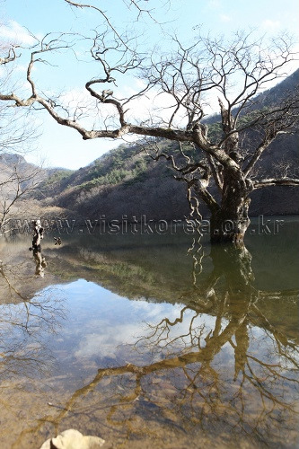 주산지(청송 국가지질공원) 모습