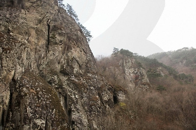 수백미터 돌덩이가 병풍처럼 솟아 있어