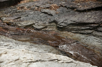 비가 오면 비응결응회암과 퇴적암층에서